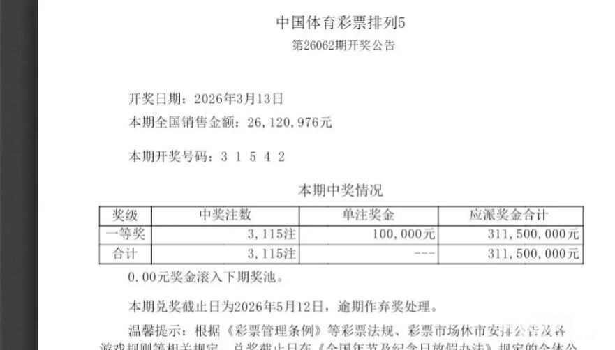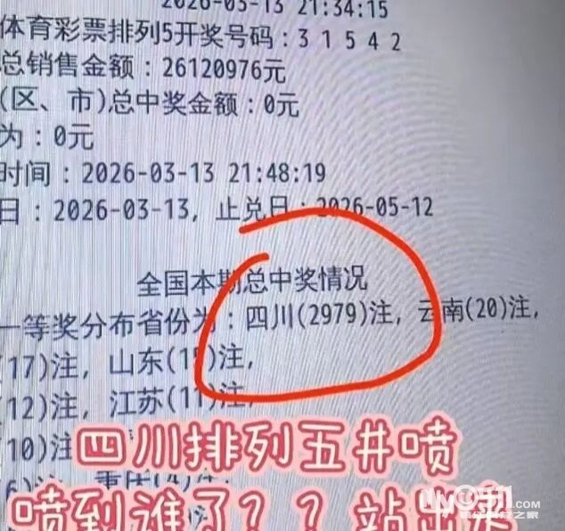昨天体彩排列五奖池被清空四川2.97亿!排列五亿元大奖?奖池2026年首次清0