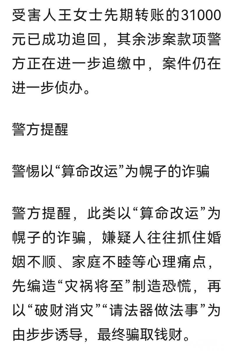 » 婚姻不顺网上求助“大师”,警方提醒:“算命改运”是诈骗