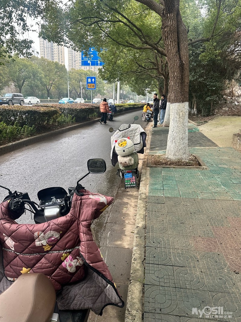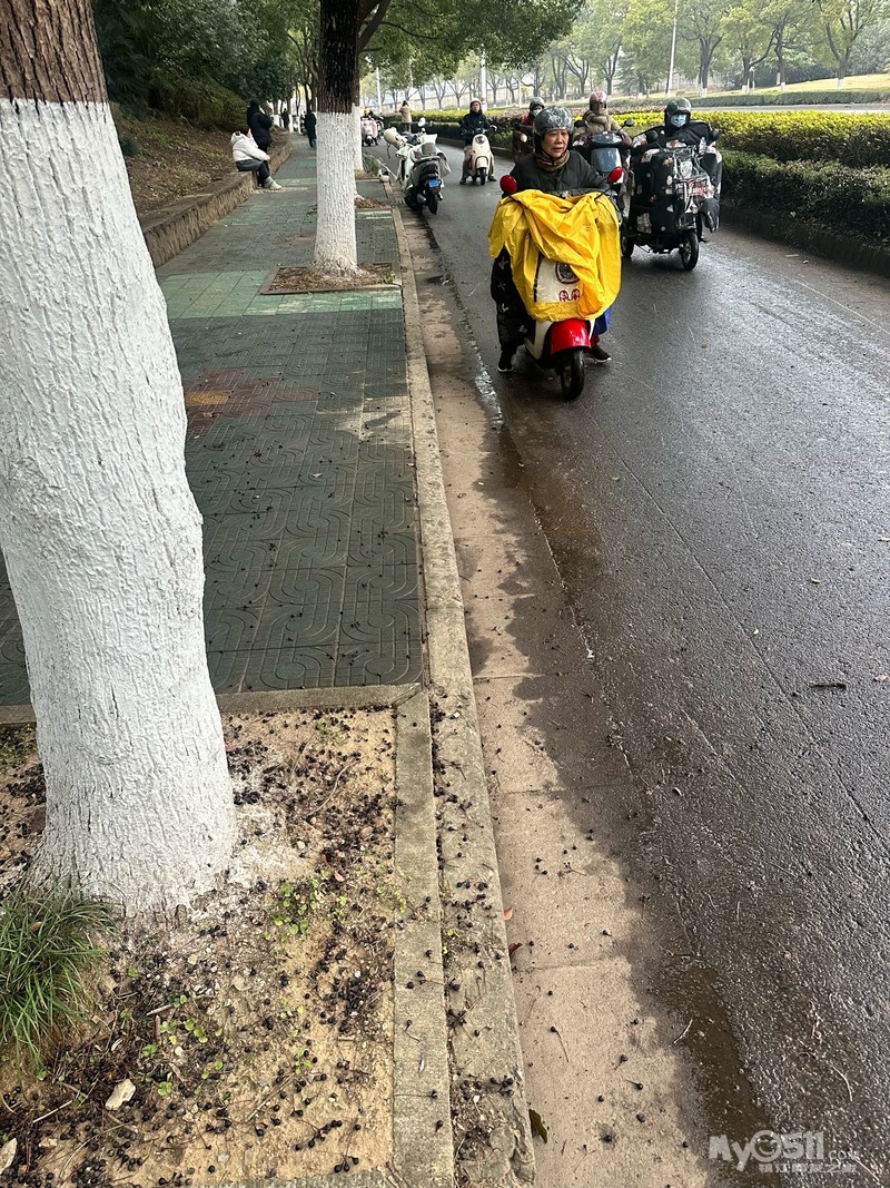 南门客运站南边非机动车道摔了几十辆车,不知道是施工队的油还是树上果子,我也摔了