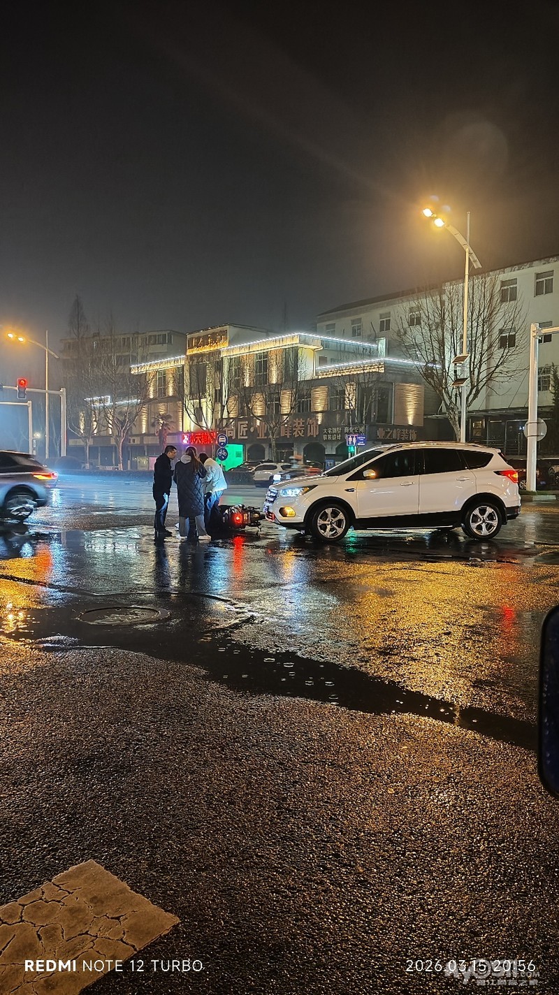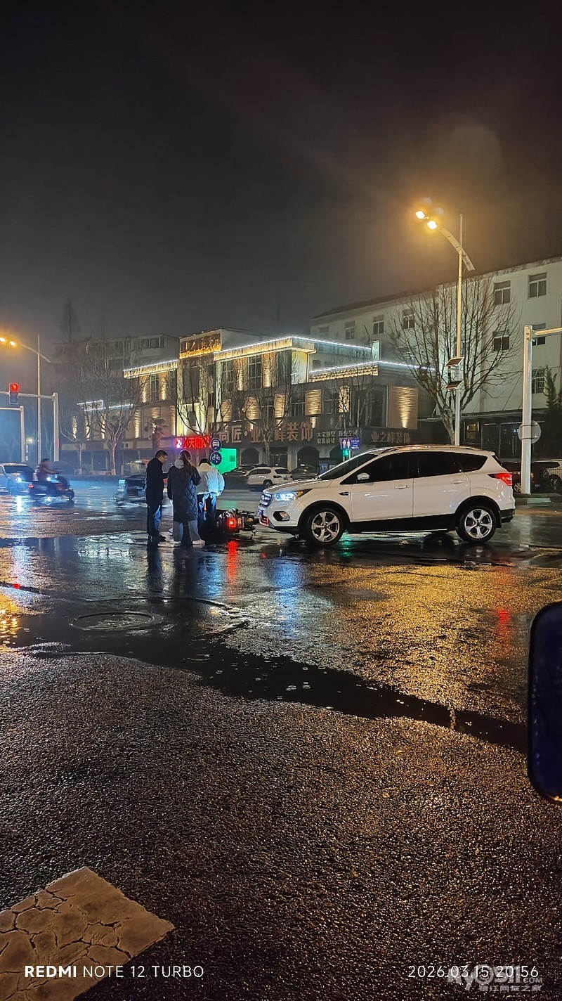 » 塔山路加油站的红绿灯处发生一起交通事故,雨天路滑注意安全!