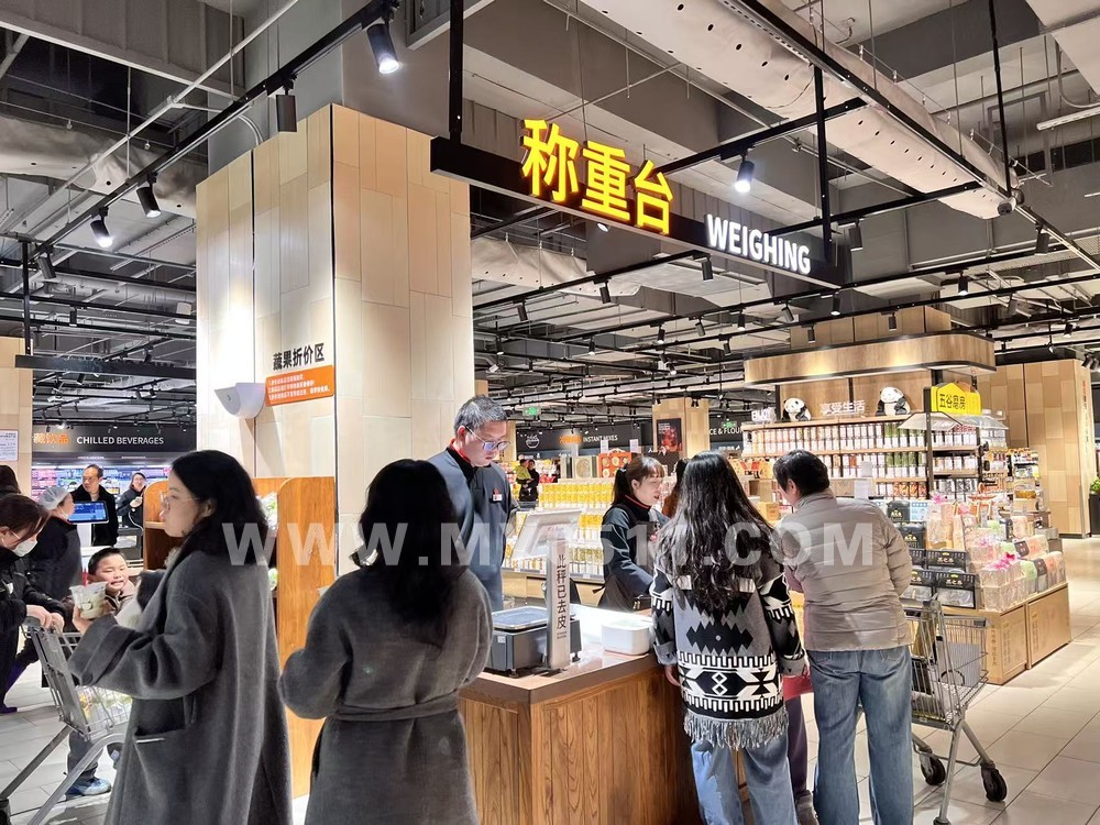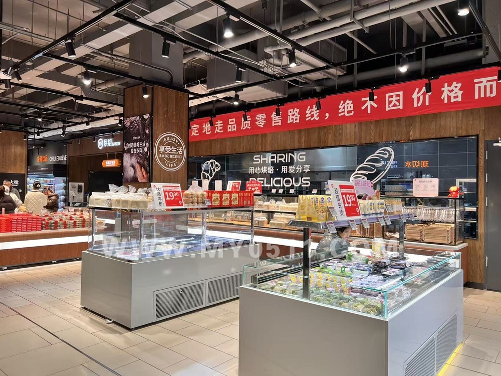 刚进入跟现在主流超市布局差不多,一边是生鲜区域,一边是烘焙区域,烘焙的产品也大多是“网红”款