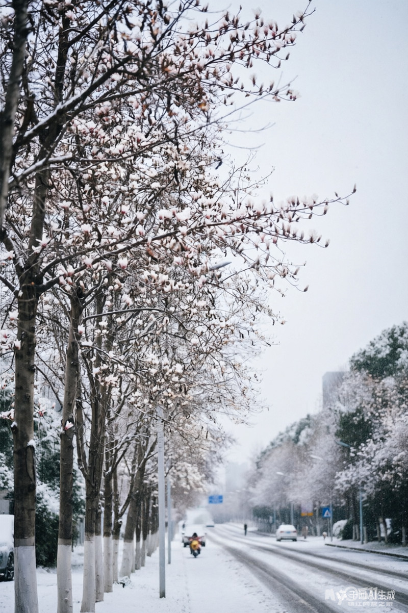 相机定格了真实的瞬间,AI则为这份真实添上了一笔浪漫的想象。当镜头里的春日暖阳与AI生成的漫天飞雪相遇,仿佛打破了季节的界限,让冬日的静谧与春日的生机在同一个画面里奇妙融合。这种虚实结合的创作,让照片不再只是对现实的记录,更像是一个关于季节、关于梦想的温柔梦境。