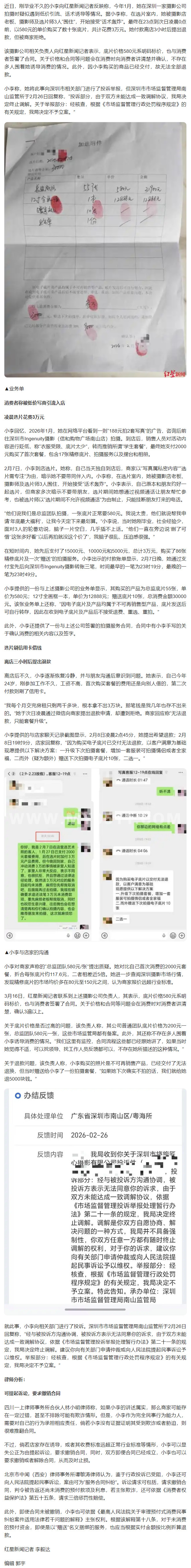 188套餐”拍写真结果花费3万,24岁女子离店3小时反悔 欲退款遭拒 商家:明码标价