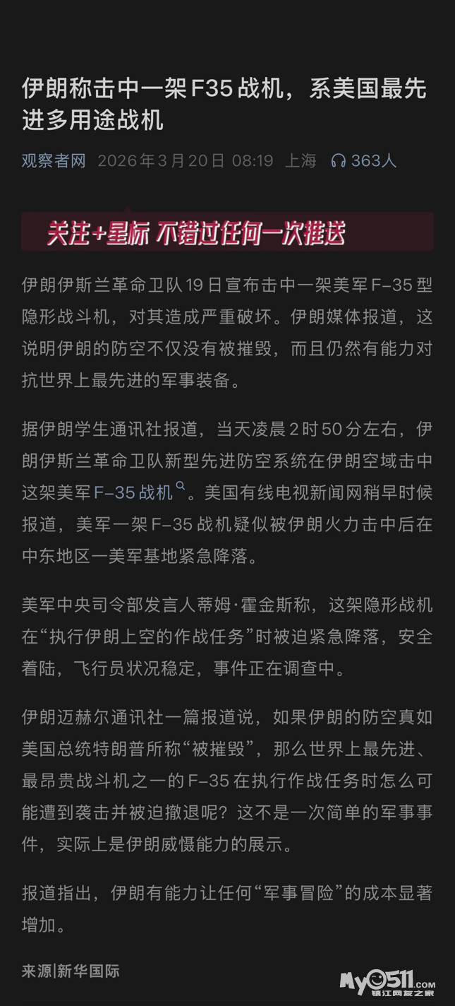 伊朗称击中一架F35战机,系美国最先进多用途战机