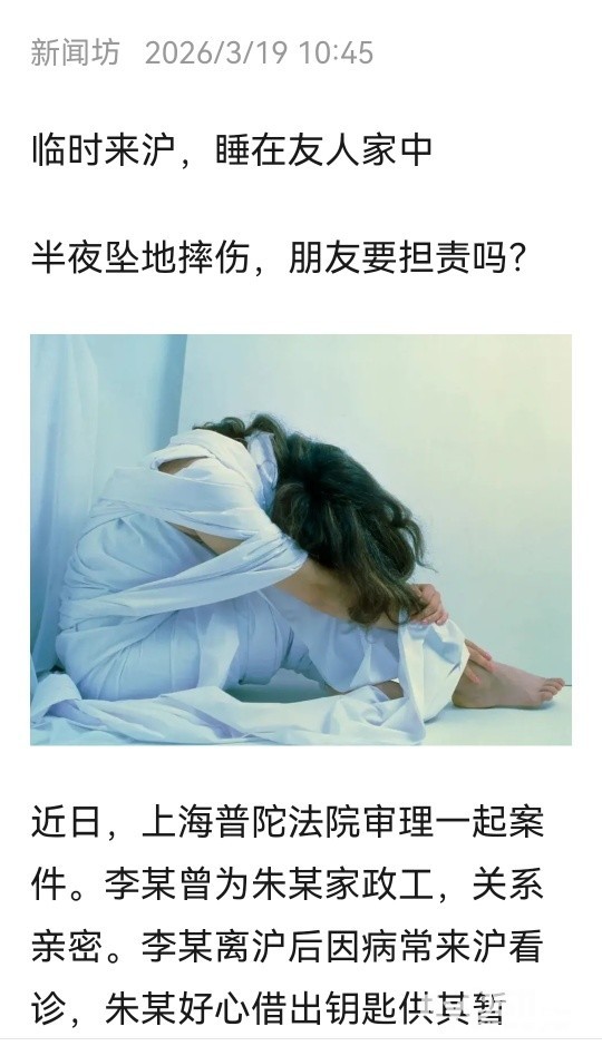» 女子因病来沪就医,借住朋友家时摔伤,竟索要医药费!法院判了