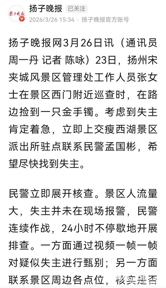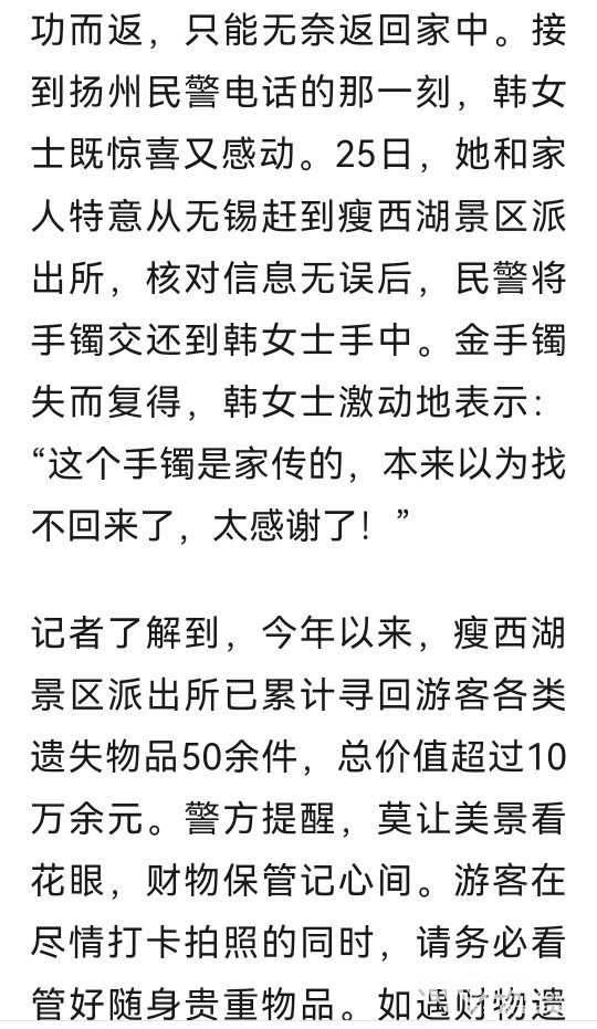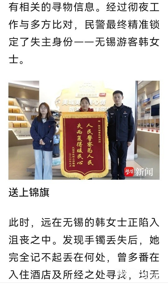 » 以为“家传手镯”寻不回来了,民警的电话给了已返回无锡家中的女士惊喜