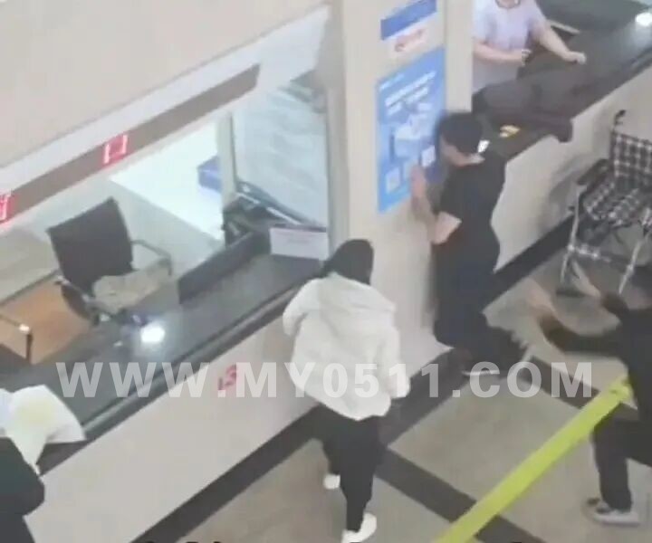 男子在医院大厅情绪激动地