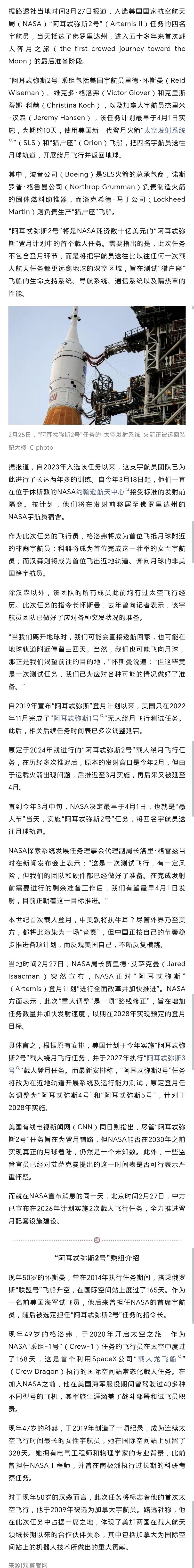 NASA最早4月1日执行载人绕月,已进入最后准备阶段