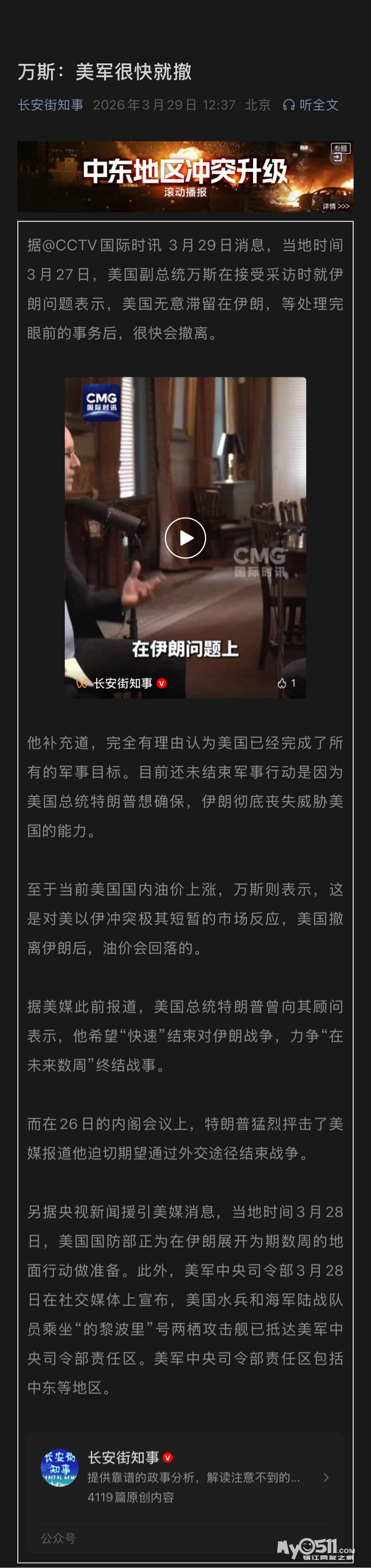 » 万斯:美军很快就撤