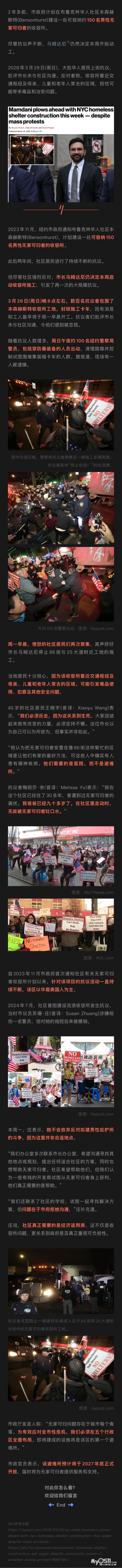 纽约华人区爆发激烈抗议! 市长强推男性收容所开工, 百名警察清场