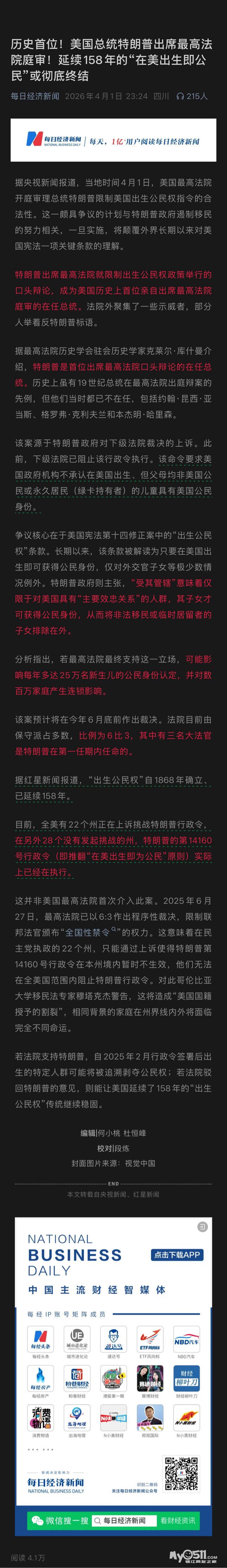 » 历史首位!美国总统特朗普出席最高法院庭审!延续158年的“在美出生即公民”或终结