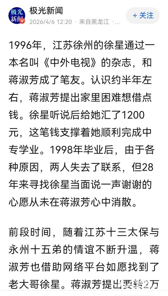 30年前女子因家里困难借笔友1200元后断连,30年后找到还2万被拒,当事人回应