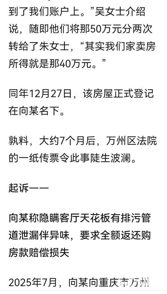 业主40万卖房竟要赔80万:买家重装后售出,第二买家因管道泄露起诉