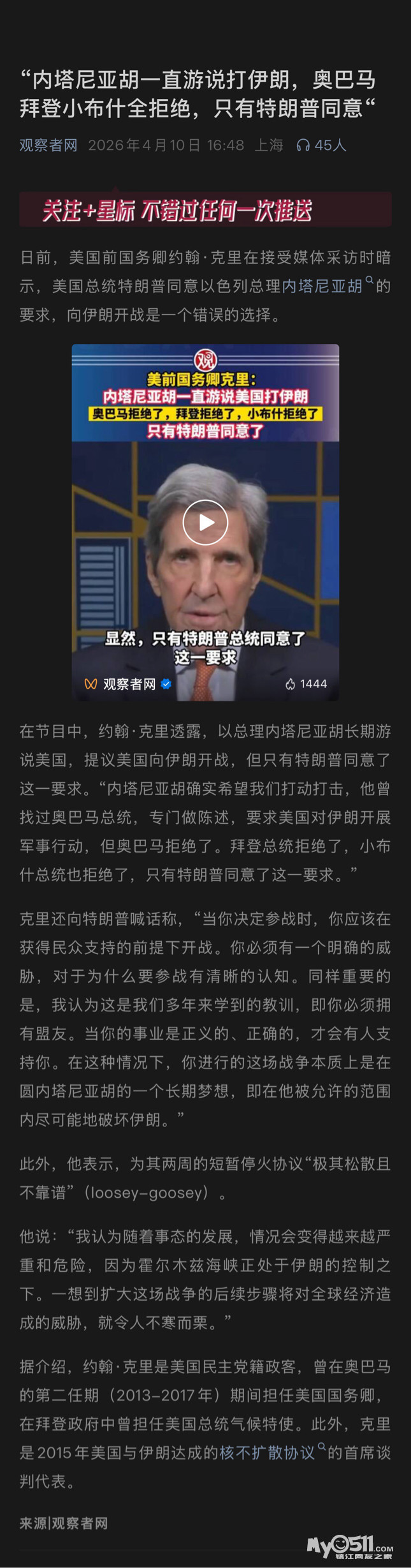 » “内塔尼亚胡一直游说打伊朗,奥巴马拜登小布什全拒绝,只有特朗普同意“