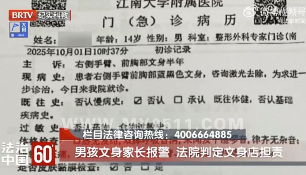 » 14岁少年950元文身文身店退赔5642元,男孩文身后遭异样目光不愿上学