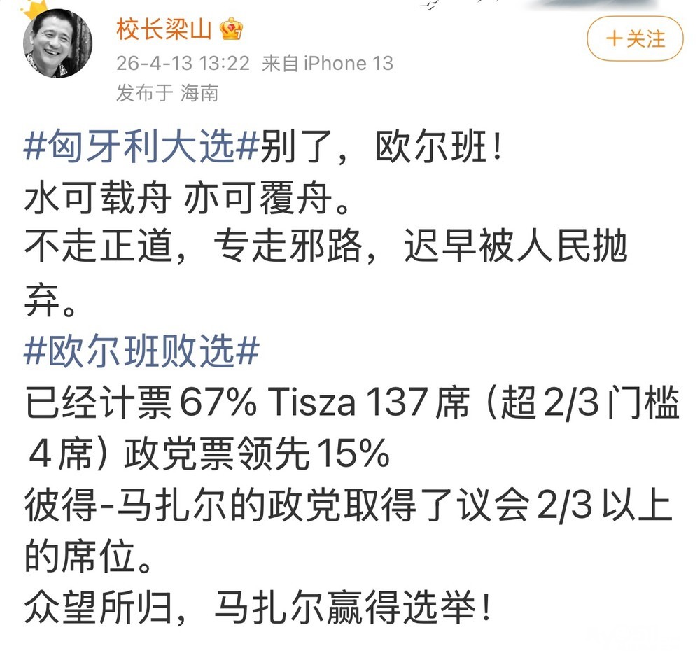 欧尔班不是跟中国关系很好的嘛