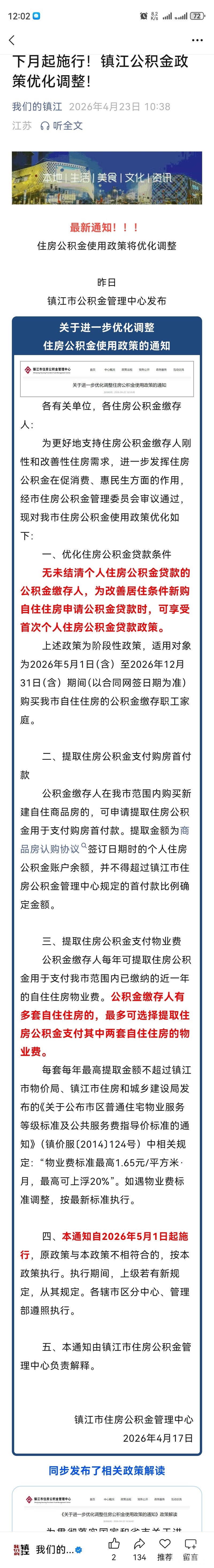 公积金新政发布。
