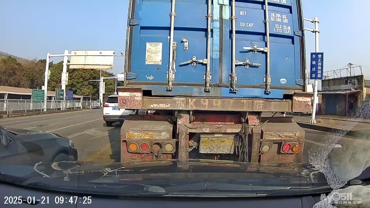 图片中装集装箱的货车的车牌已经看不清了,如果闯红灯能被处罚吗,发生交通事故会被追查到吗,交警也该提醒一下司机换车牌了,另外兴港东路上遇到不少车例如渣土车、搅拌车的车牌都看不清