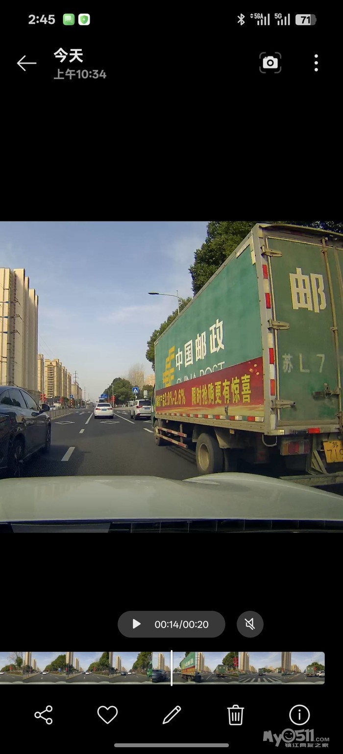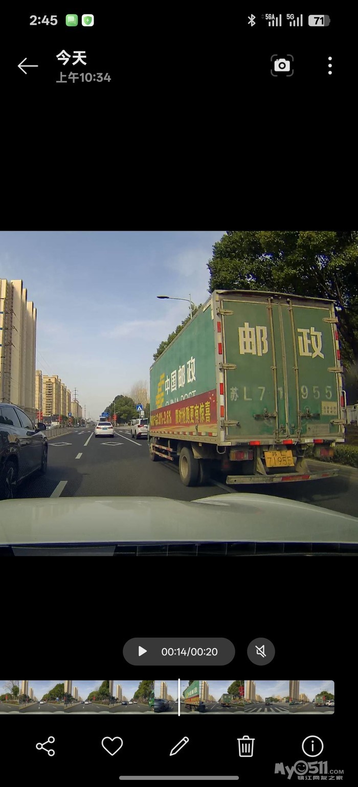 苏L71955邮政车辆在句容公安局南门文昌东路多次故意别车,并压实线