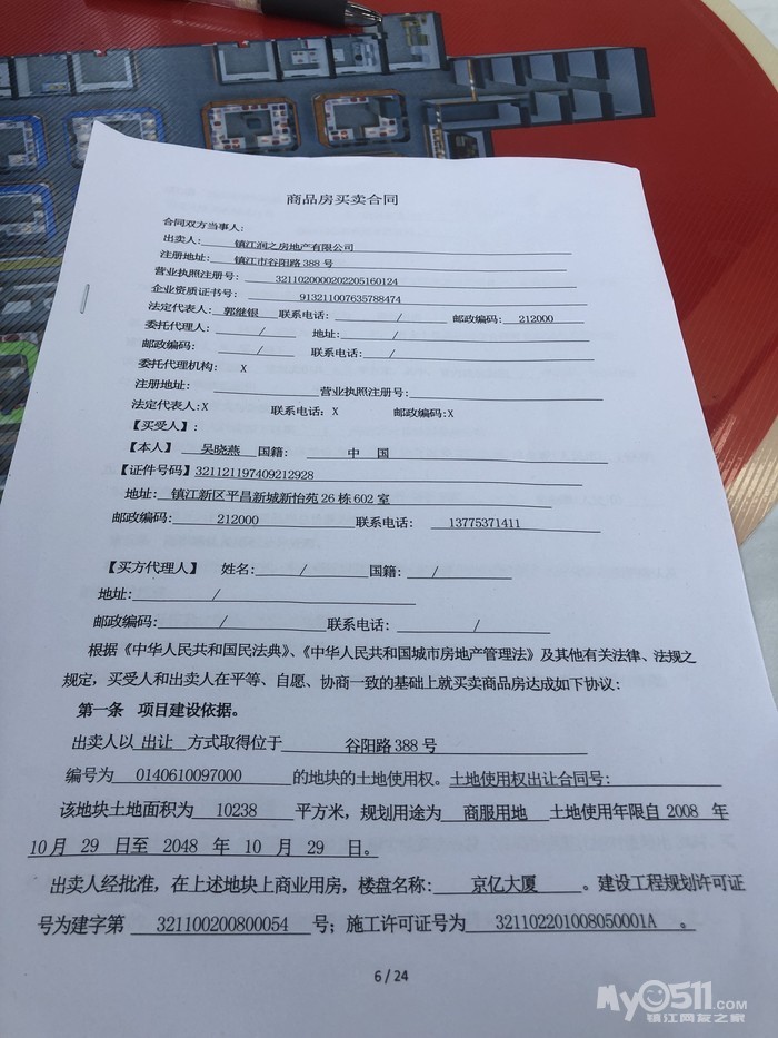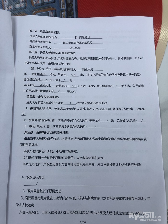 在告诉你一个合同上明显错误的地方 预销售许可证2010开头的批准机关应该是镇江市房产管理局