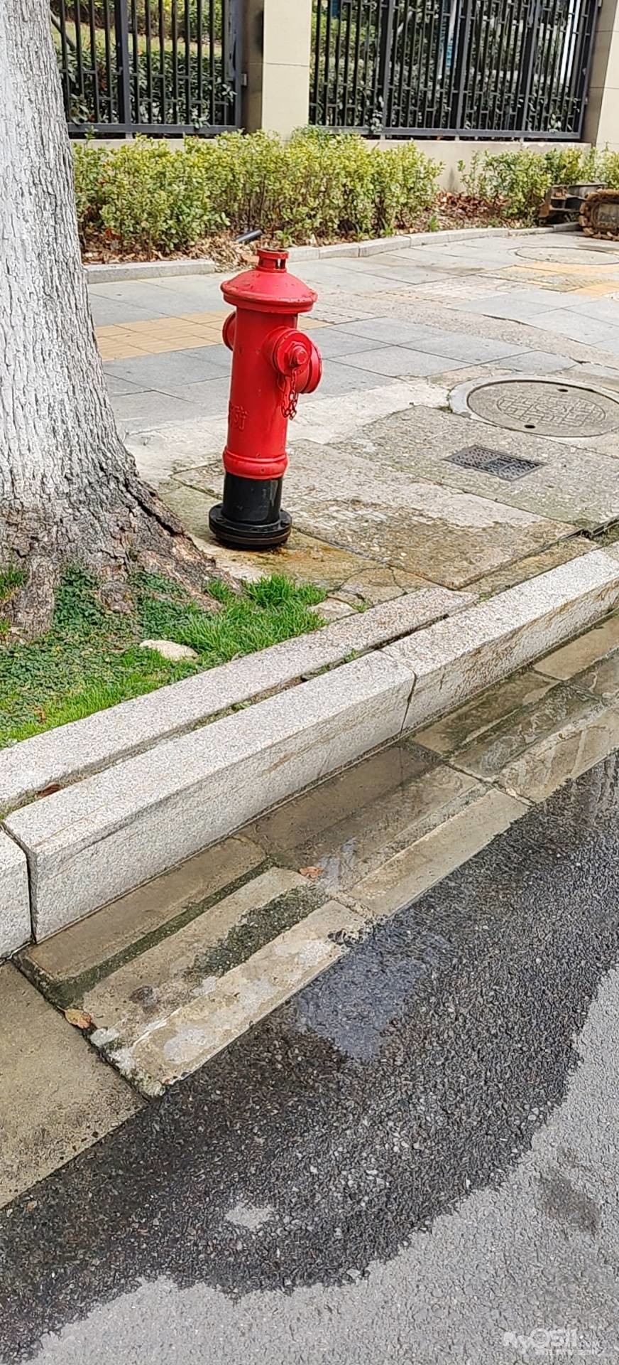 绿地小区五洲山路边消防栓漏水