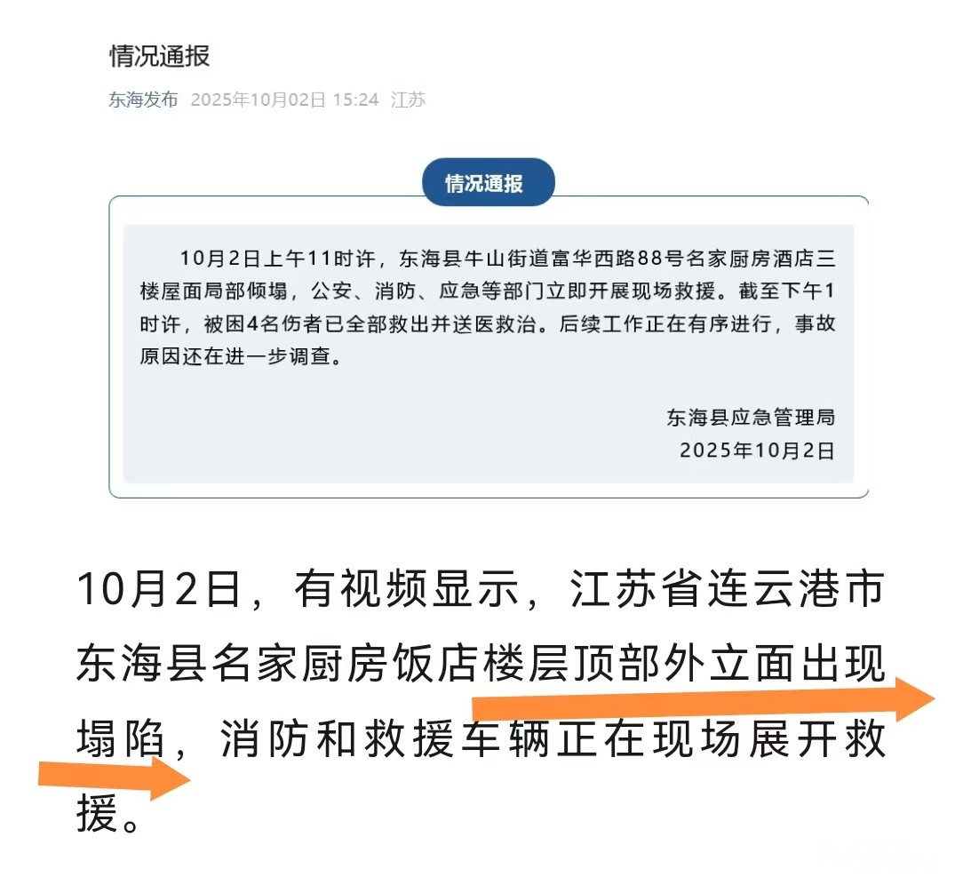 附,近日连云港东海刚刚发生的楼顶坍塌事故官方通报!