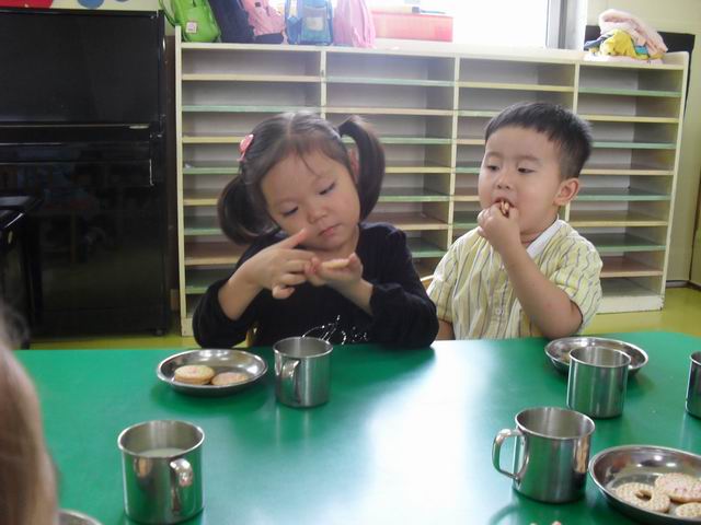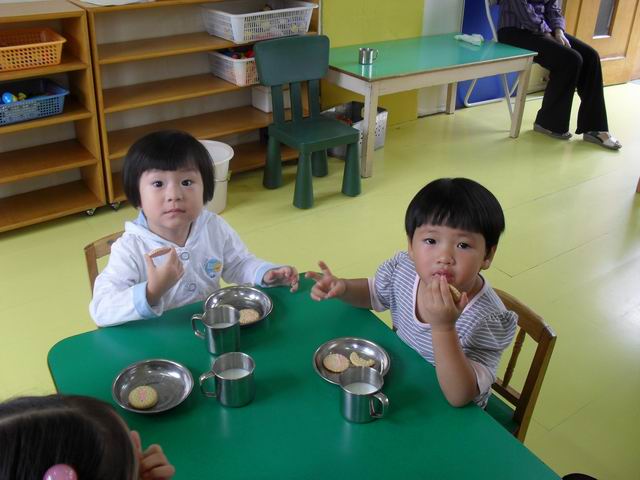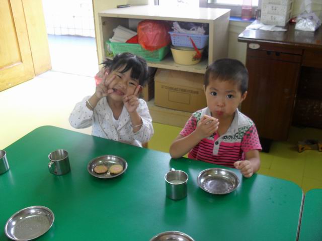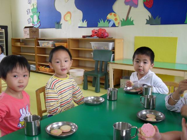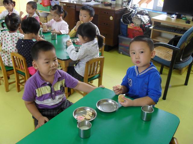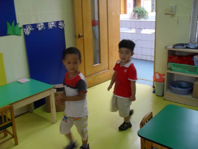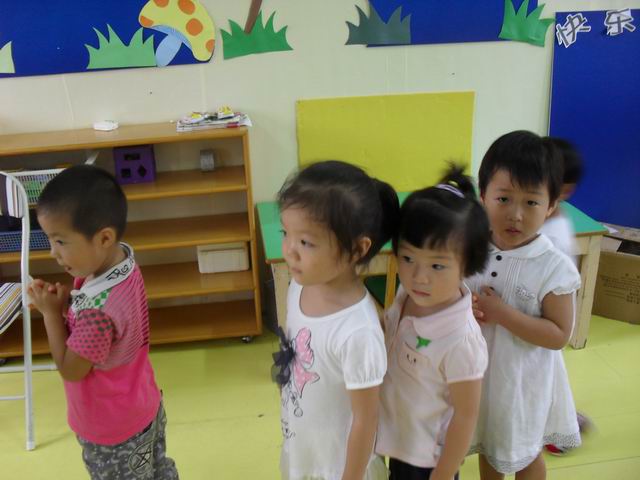 宝宝们真的很可爱,很多宝宝都热情的称呼老师是妈妈,还有的宝宝很关心老师,老师出去一会,宝宝都会问"老师妈妈去哪了?"今天已经是第二天上学了,早晨来园,几乎没有一个宝宝找错自己的座位,中午睡觉宝宝们也都找到了自己的小床哦,宝宝们真的很聪明哦!请爸爸妈妈们放心,我们许多宝宝都学会了自己小便,自己入睡,自己倒水喝,呵呵我们两天的进步可真不小吧