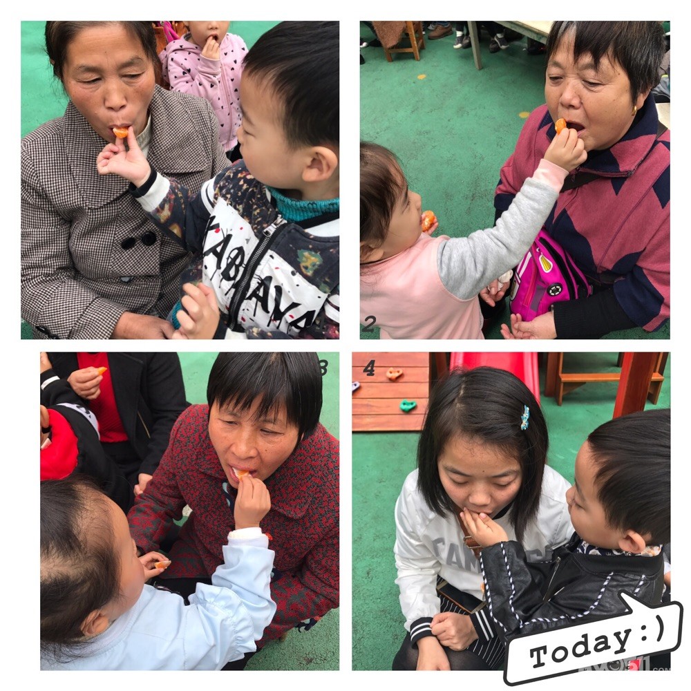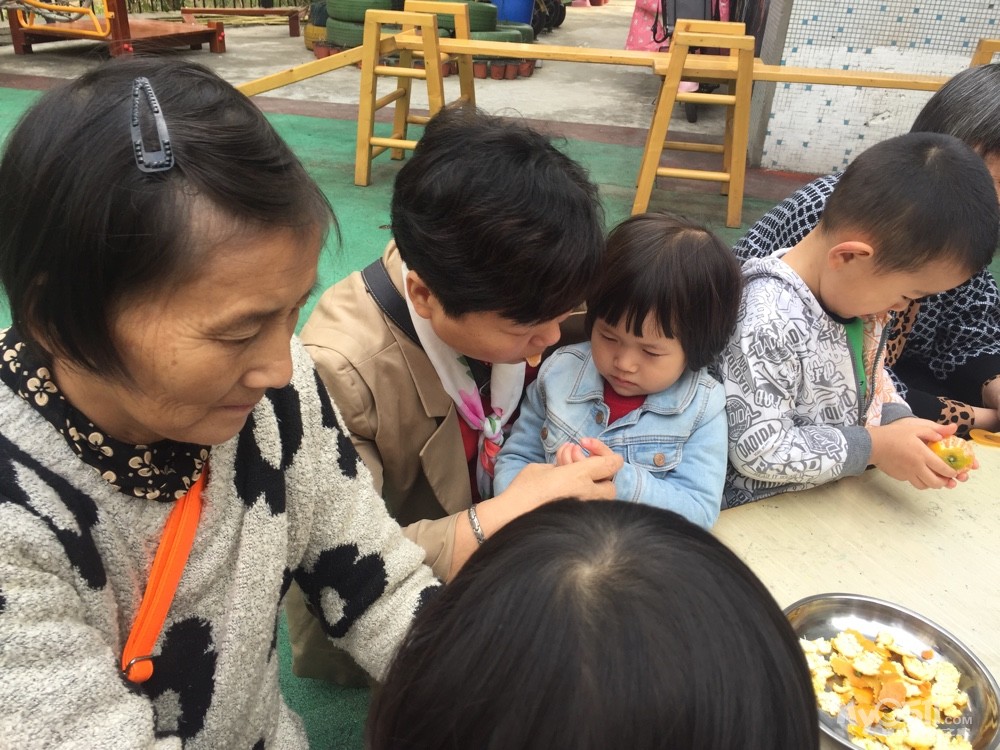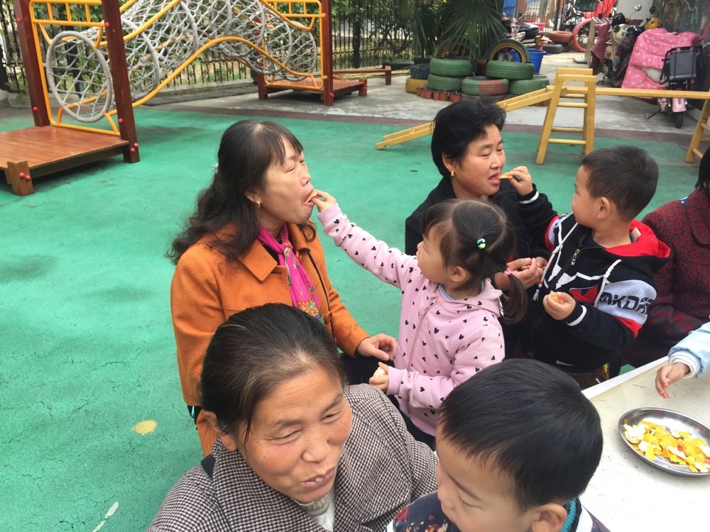 剥好橘子喂他们吃