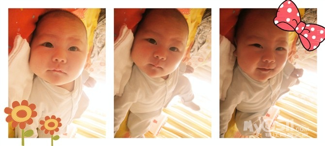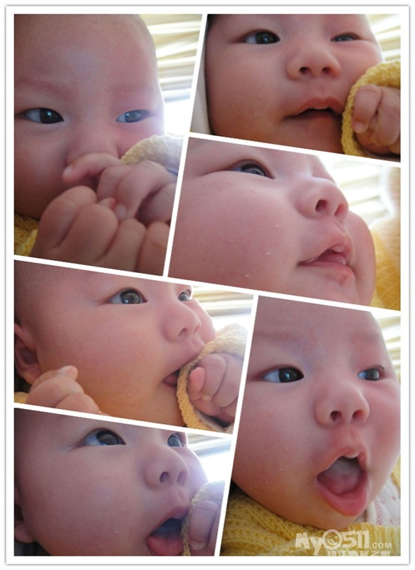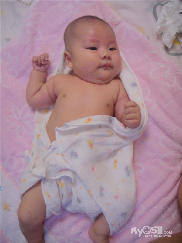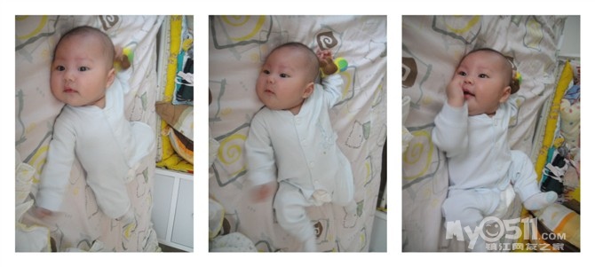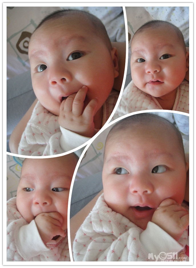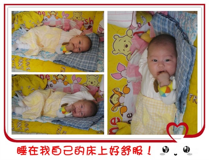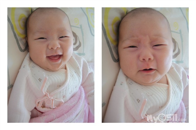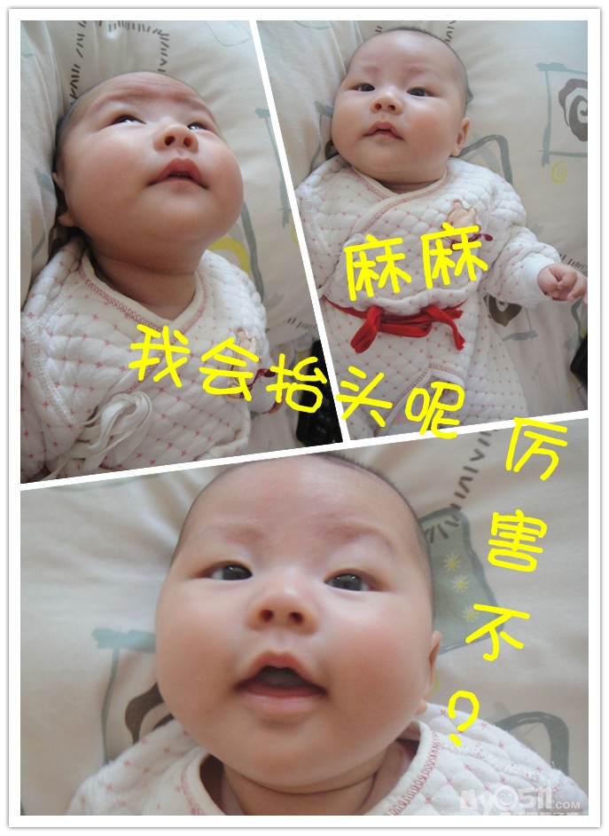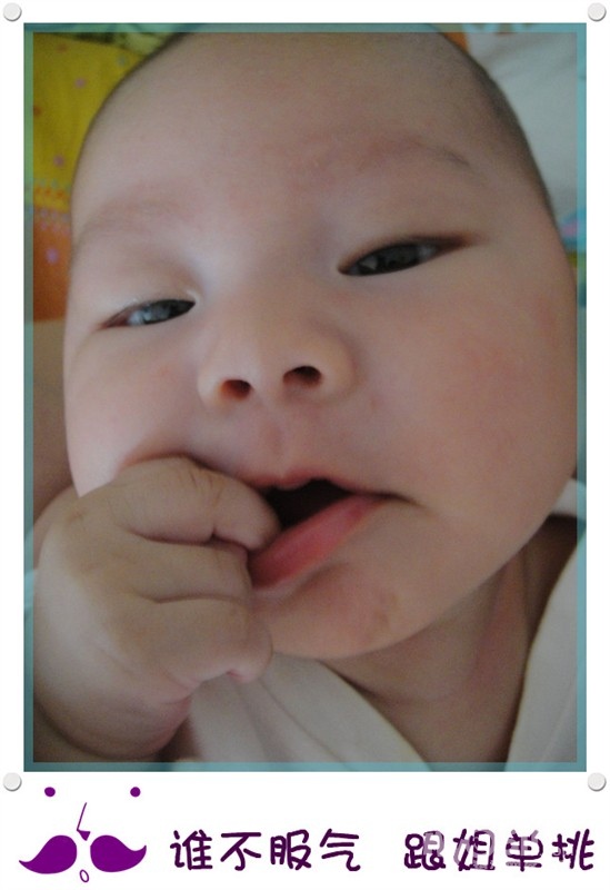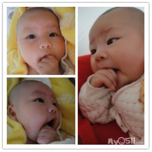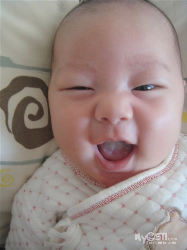 前几天开始会冲着人笑呢,真让人哭笑不得,有时候自己笑笑,有时候抱在手上要吃奶的时候冲我笑,基本洗过澡会笑,(眼睛睁着笑),有几次笑得呵呵呵呵的。。闹的时候都想刷她小屁股。。。