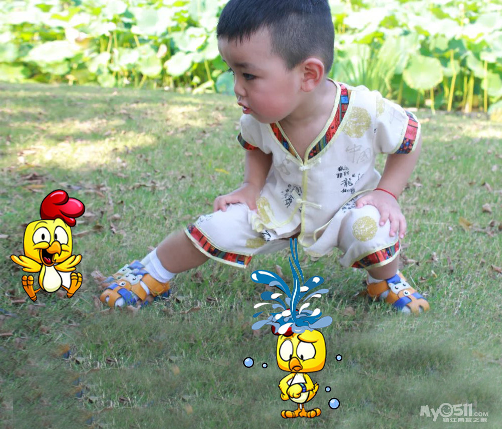 楷瑞照片为底图 小鸡插画加起来