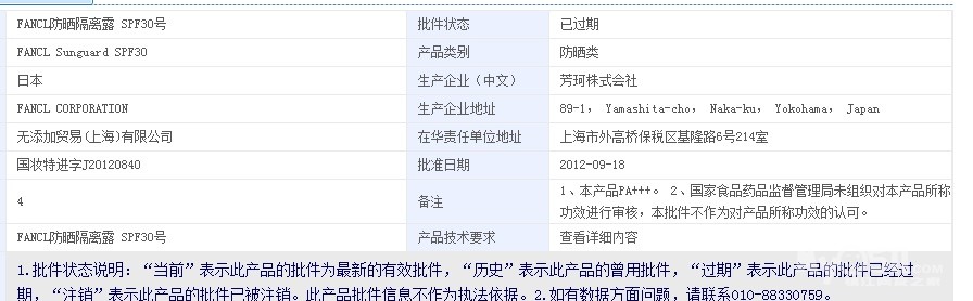 FANCL防晒隔离露 SPF30号 ,我去食品药品监督局查了一下发现状态为已过期。现在我想问一下大家,如果孕妇能用的防晒霜是不是只要在食品药品监督局里面看到的没有过期的都是可以的?
