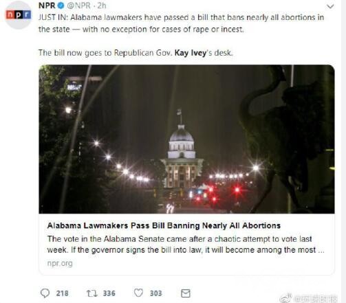 美国最近通过了一项备受争议的“反堕胎”法律。这项法律不仅要求女性从怀孕开始的那一刻起就不得堕胎,而且即便她们的怀孕是被他人强奸和乱伦所致,也不能堕掉,只能生下来…..根据美国媒体的报道,这项已经在美国引起众多女性愤怒抗议和谴责的法律,是在继前些天以74-3的得票数通过了阿拉巴马州的众议院后,于当地时间周二晚上(即北京时间今天上午)通过了当地参议院的。得票数是25票赞成,6票反对,1票弃权。
