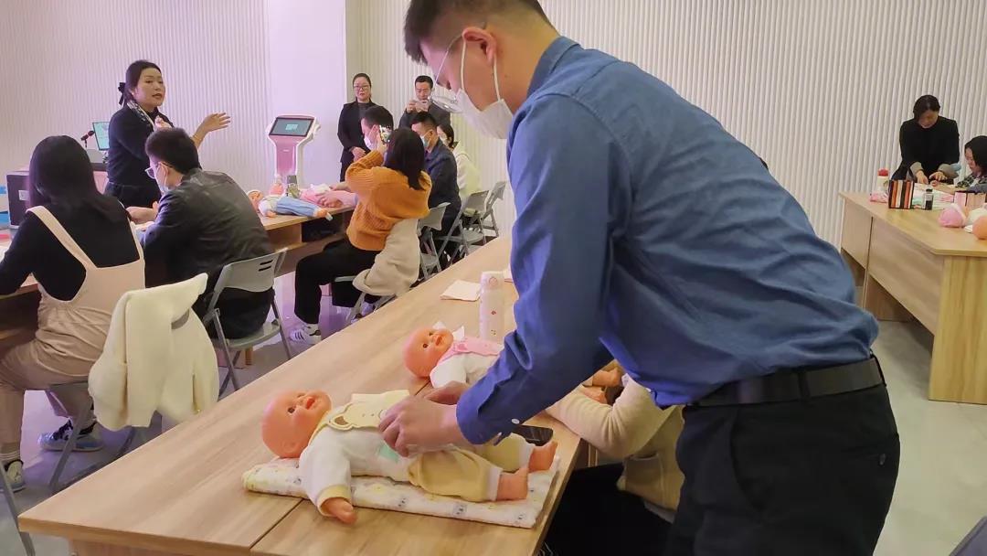 经过努力的学习,爸爸学会了很多母婴护理知识,