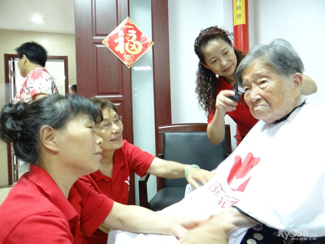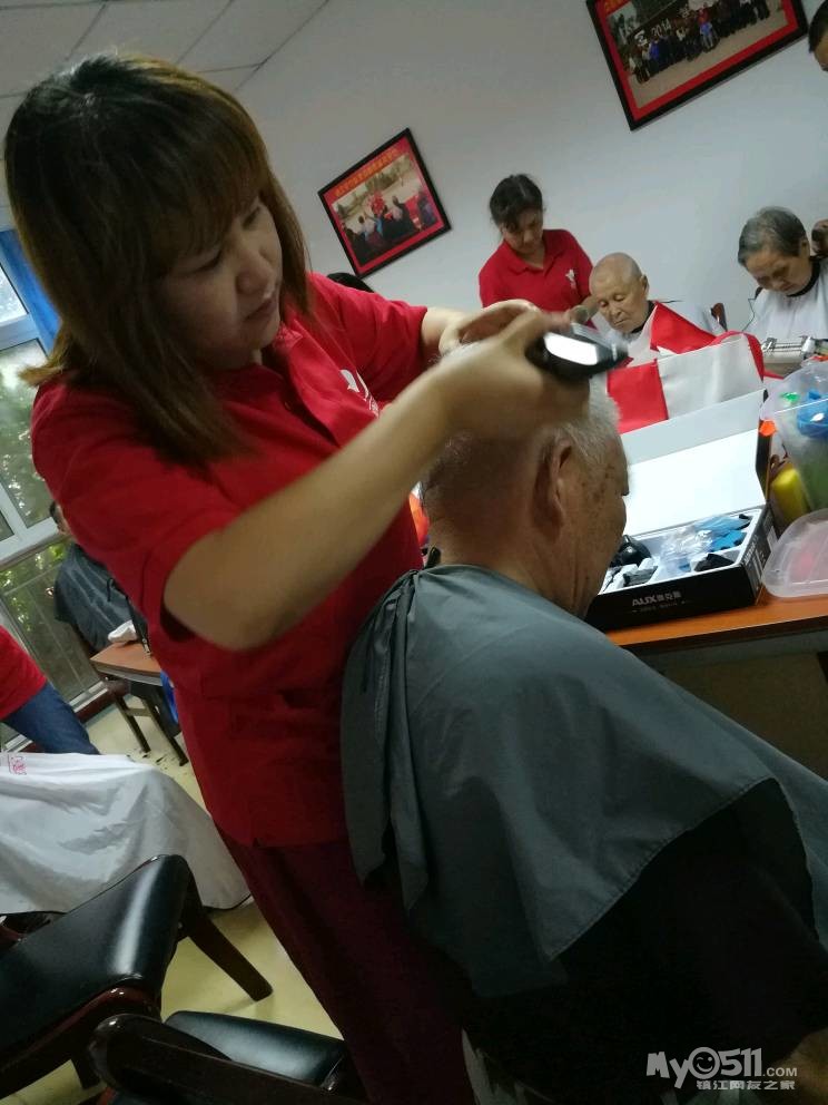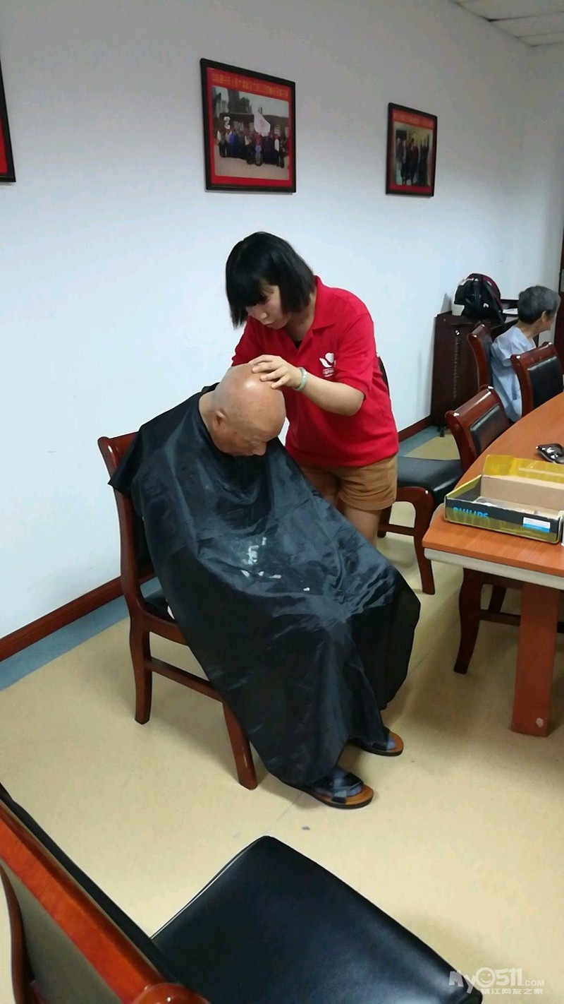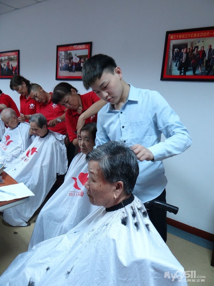 蒙蒙细雨阻挡不住家园志愿者!红园服再次走进冠城敬老院,老人们早早的便坐在阅览室等家园理发队的到来!每次理发队活动多有新人加入,盲人王老爷子多要高歌一曲为理发队助助兴!