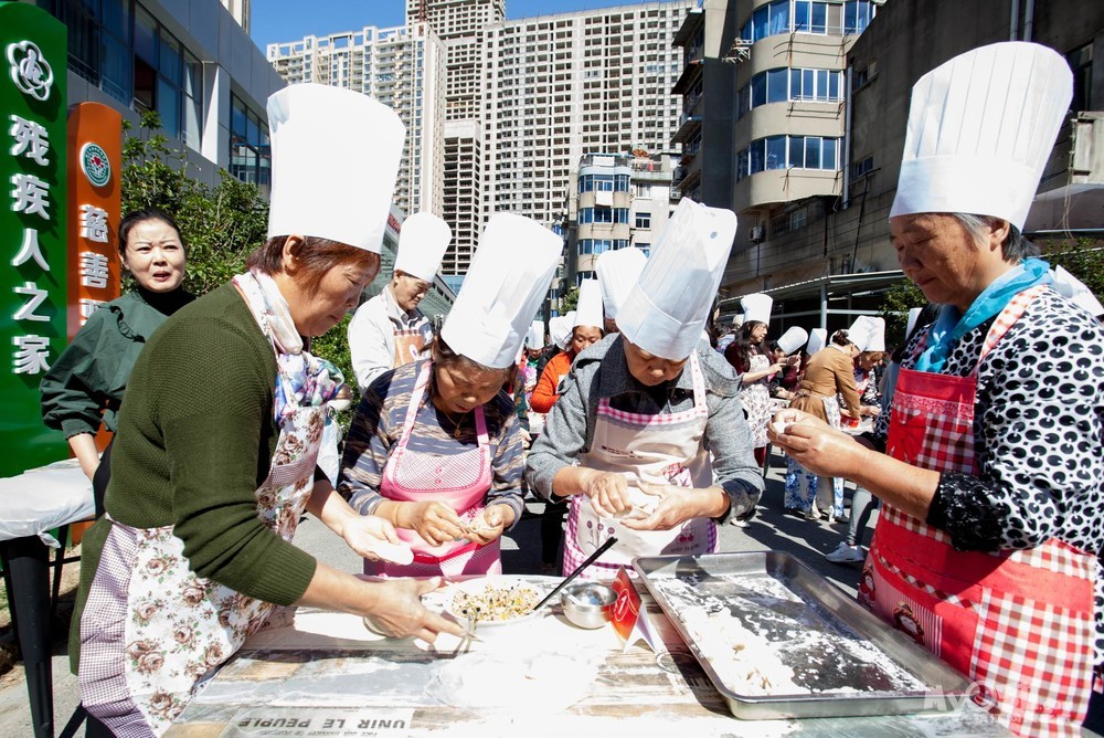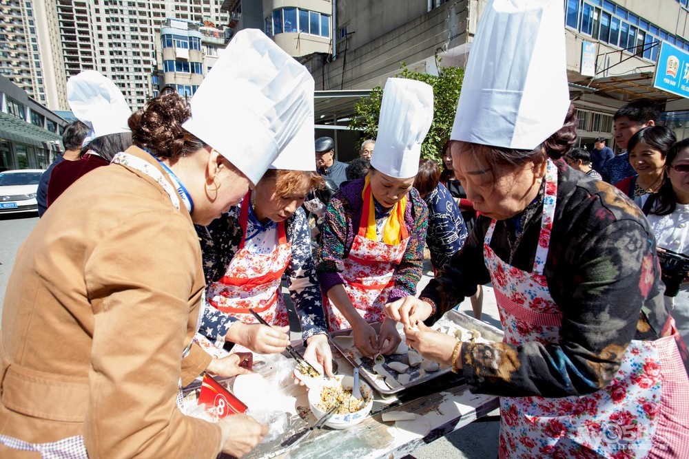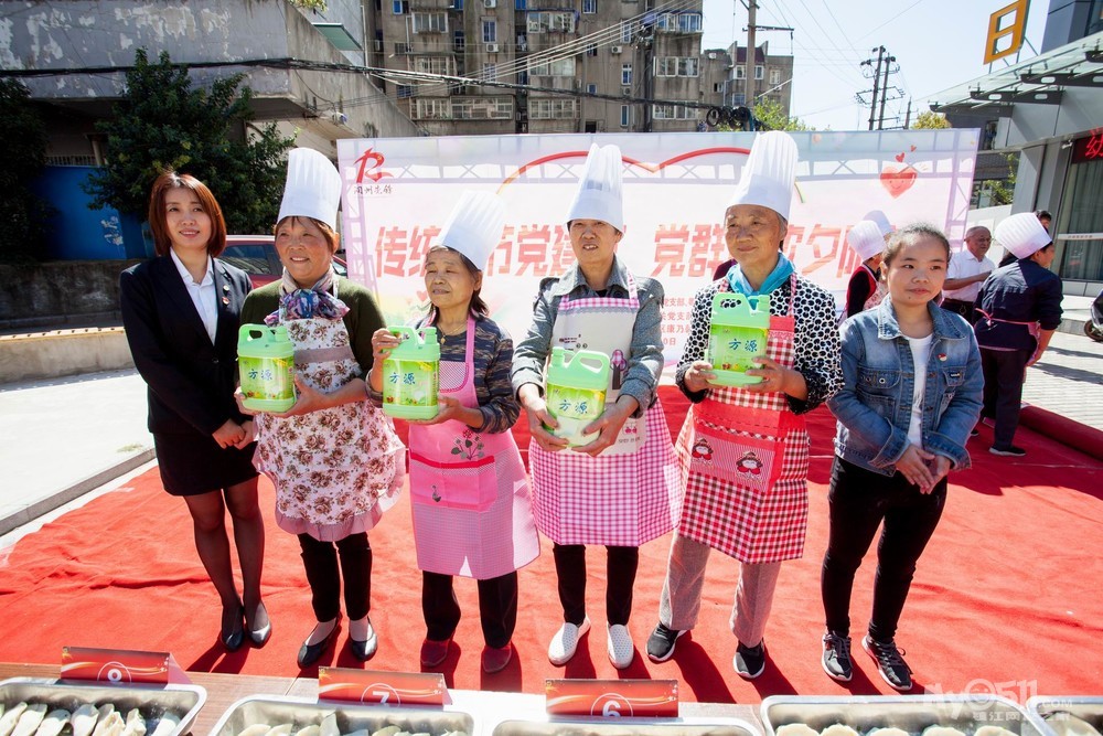为了大力弘扬重阳节孝亲敬老的优良传统,展现党建联盟单位尊老敬老的精神风貌,发挥党员先锋模范作用,形成有效为民服务合力,增强党的的凝聚力和向心力。10月10日上午,在2018年重阳节到来之际,由迎江路中心社区康乃馨党支部联合润州土地房屋开发总公司第一党支部、粤海酒店党支部、润州区人社局机关党支部的党员志愿者们共同为社区日间照料中心的老人们举办了【传统佳节党建红 党群联欢夕阳美】的主题活动,该主题活动旨在为老人们的生活增添色彩,提高老年人幸福指数以及生活质量。活动现场老人们与党员志愿者相互配合,包饺子比赛、舞蹈、旗袍秀。气氛热闹非凡,节目精彩纷呈。