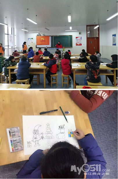圣诞树,圣诞老人,圣诞礼盒,圣诞袜……12月14日下午,镇江麦田义工服务社的志愿者会同市凯笙琴艺培训中心的吴悦老师带着满满的圣诞元素来到了大路实验学校,为孩子们带来了一节有趣味的剪贴画课程。