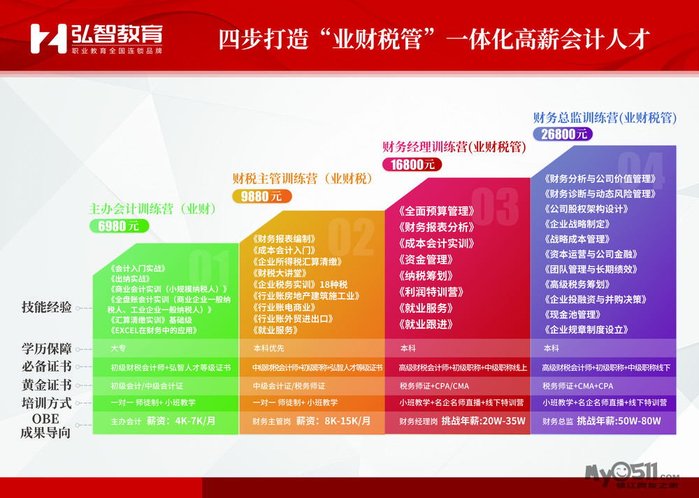 必备证书:初级财税会计师+弘智人才等级证书