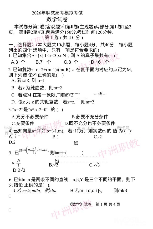 职教高考数学模拟试卷