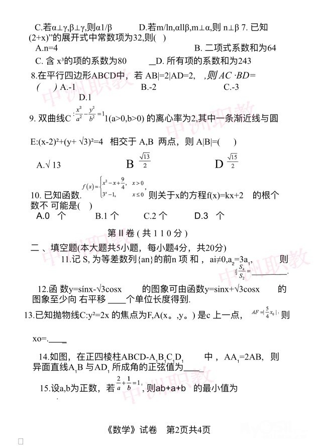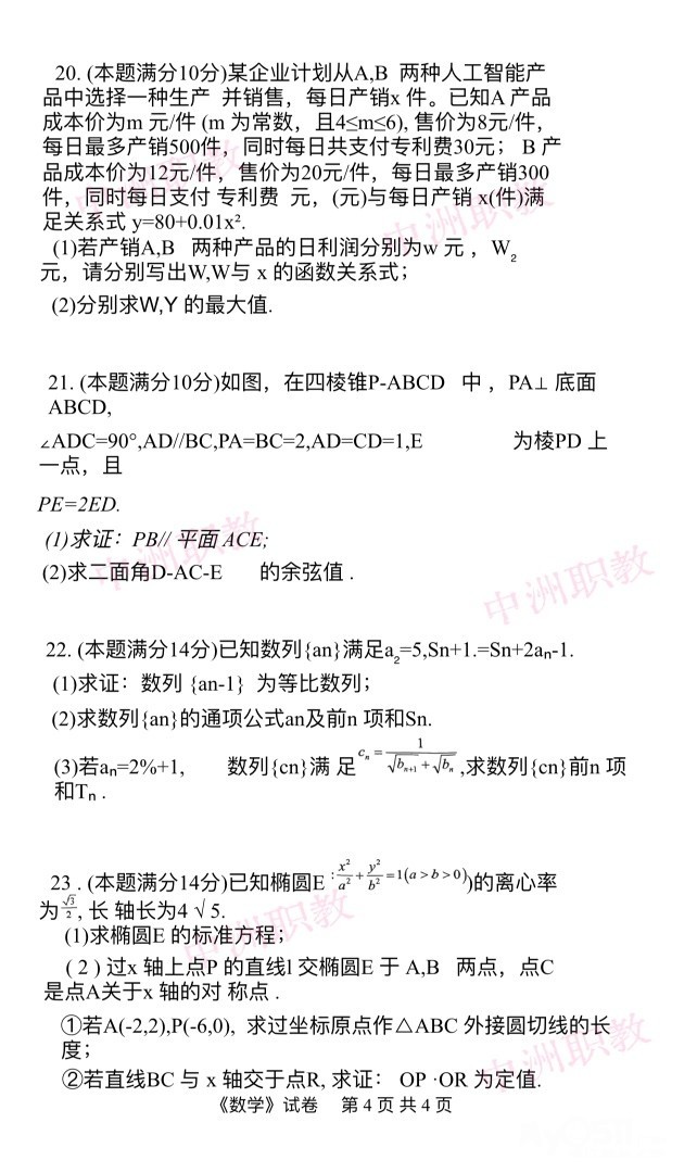 > 职教高考数学模拟试卷 [广告推广]