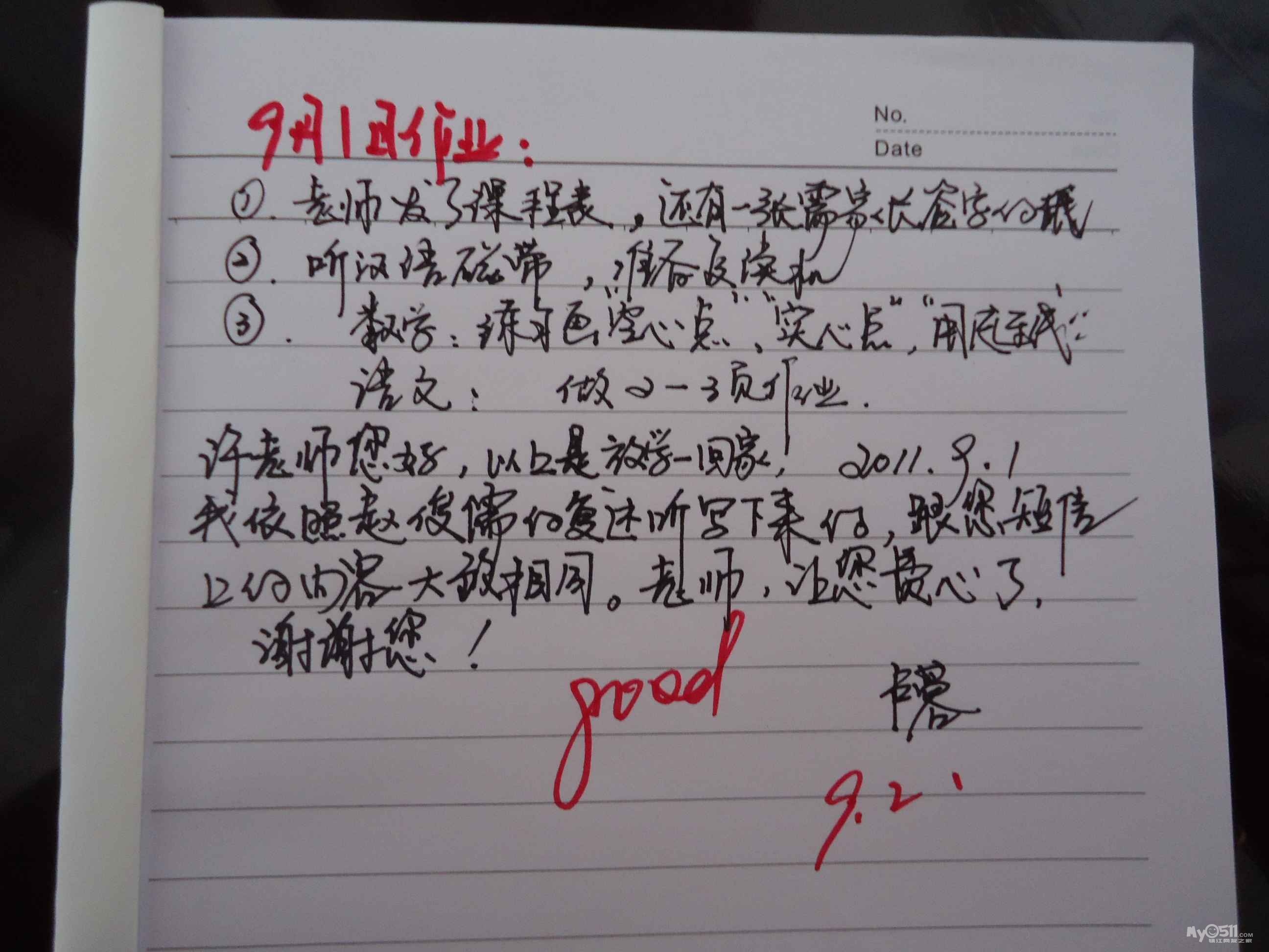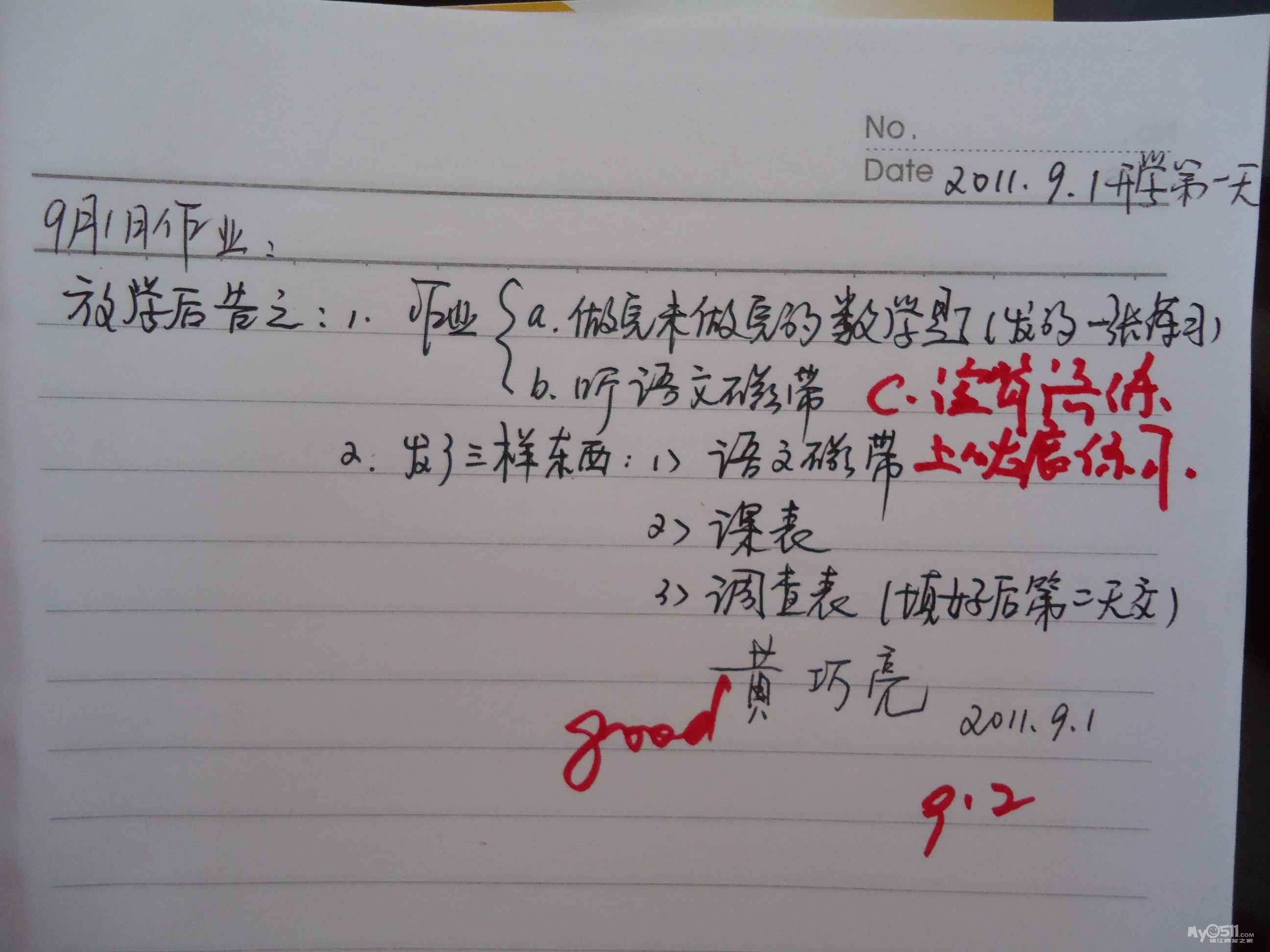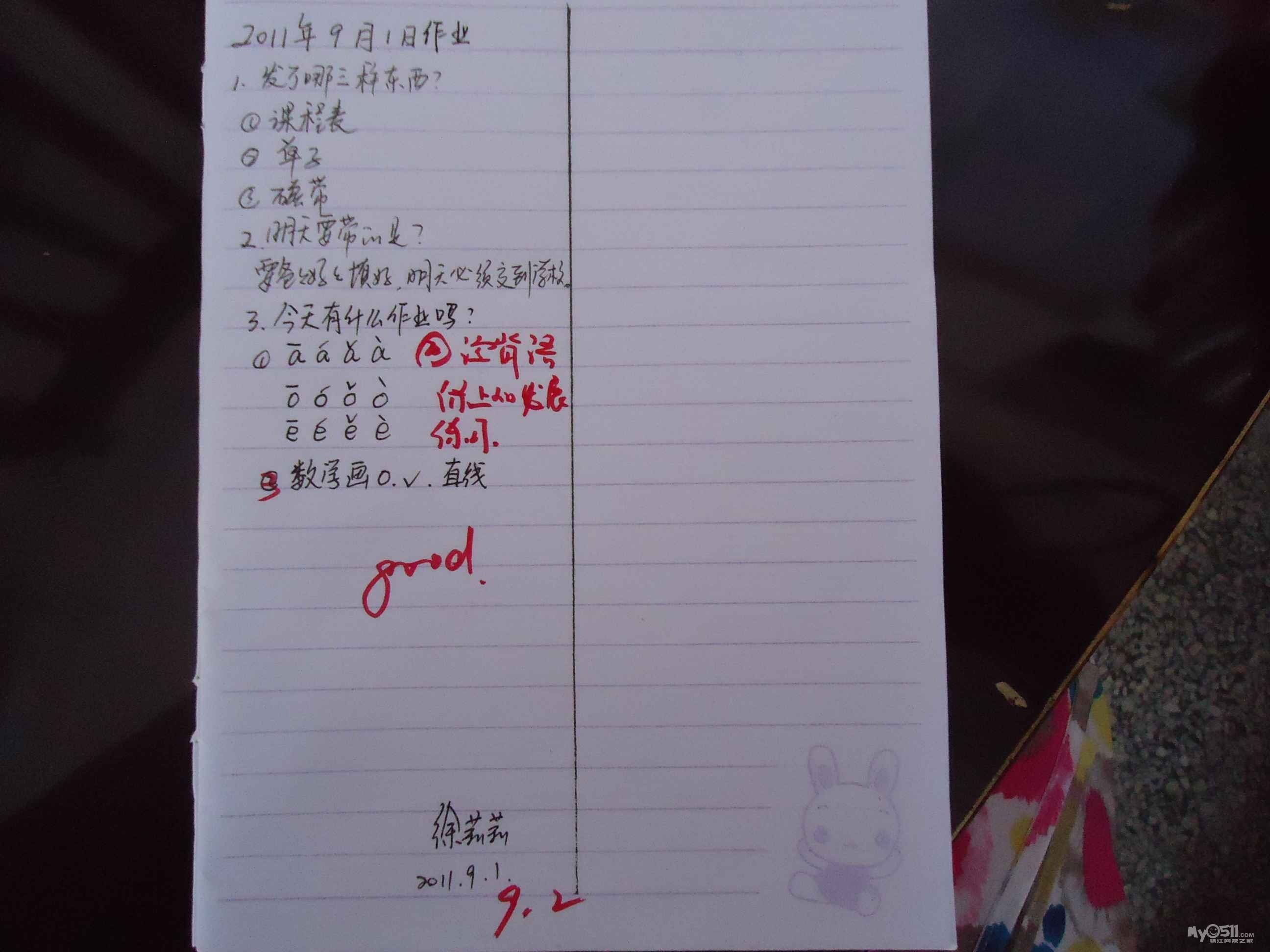 我家吃饭是个最头疼的问题,他能吃但吃得慢,这事一直困扰着我们);第一天上学将他的作品和两本课外书放进他的书包,让他带到学校交给老师,可放学回来一看居然作品和一本书还在他的书包里,问他怎么不交给老师呢,他说老师没要,唉,不知道第二天他是否有勇气交给老师,等今天他放学回来看吧,还请老师上课时经常能点点他,给他鼓励,在此先谢谢了! 庄子健妈妈敬上