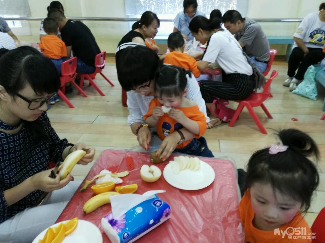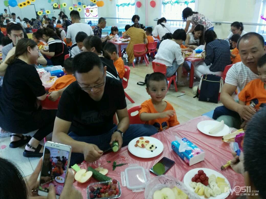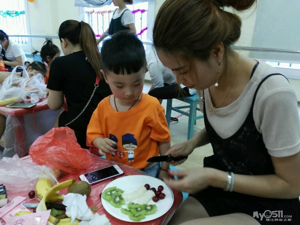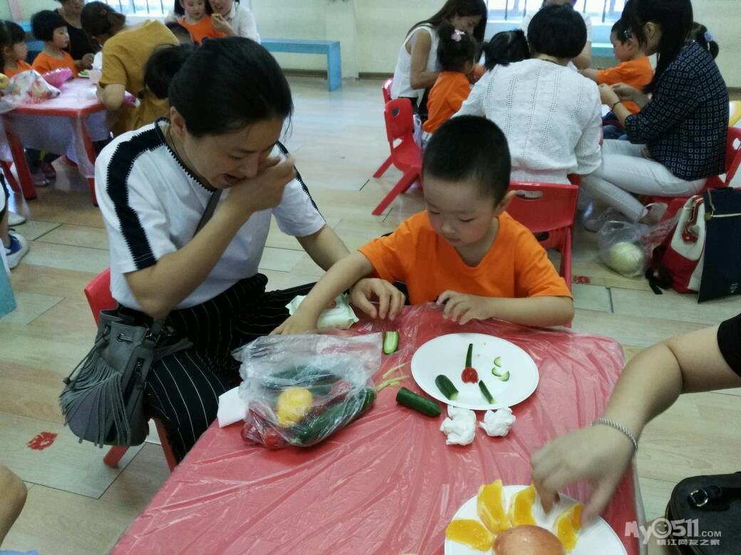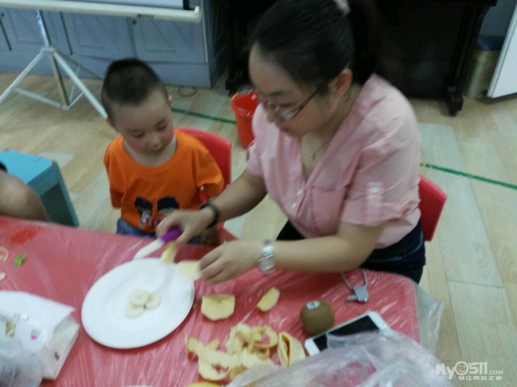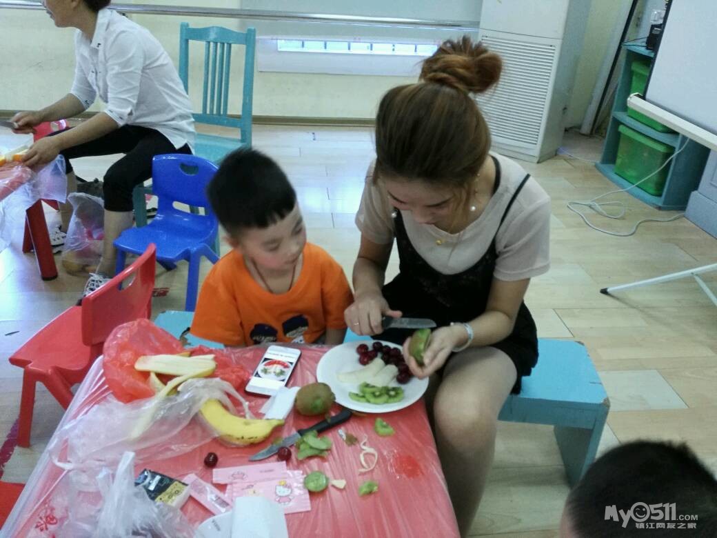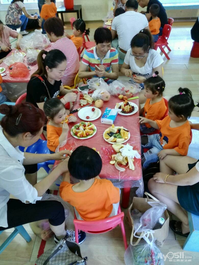 家长们和孩子共同制作水果拼盘