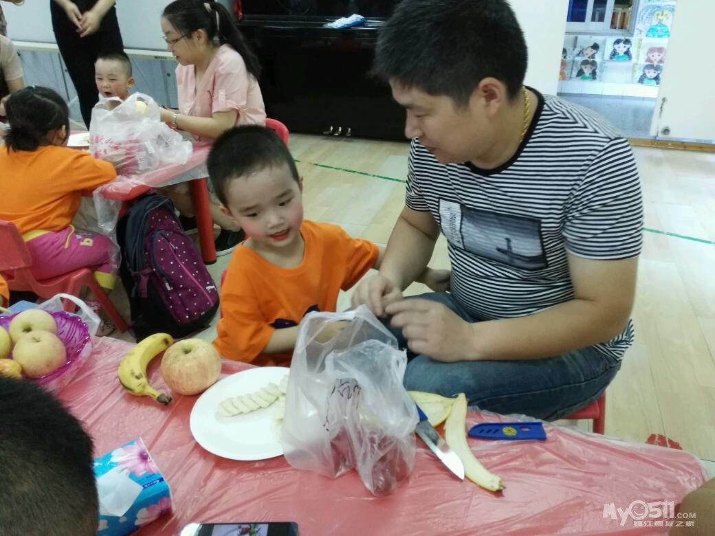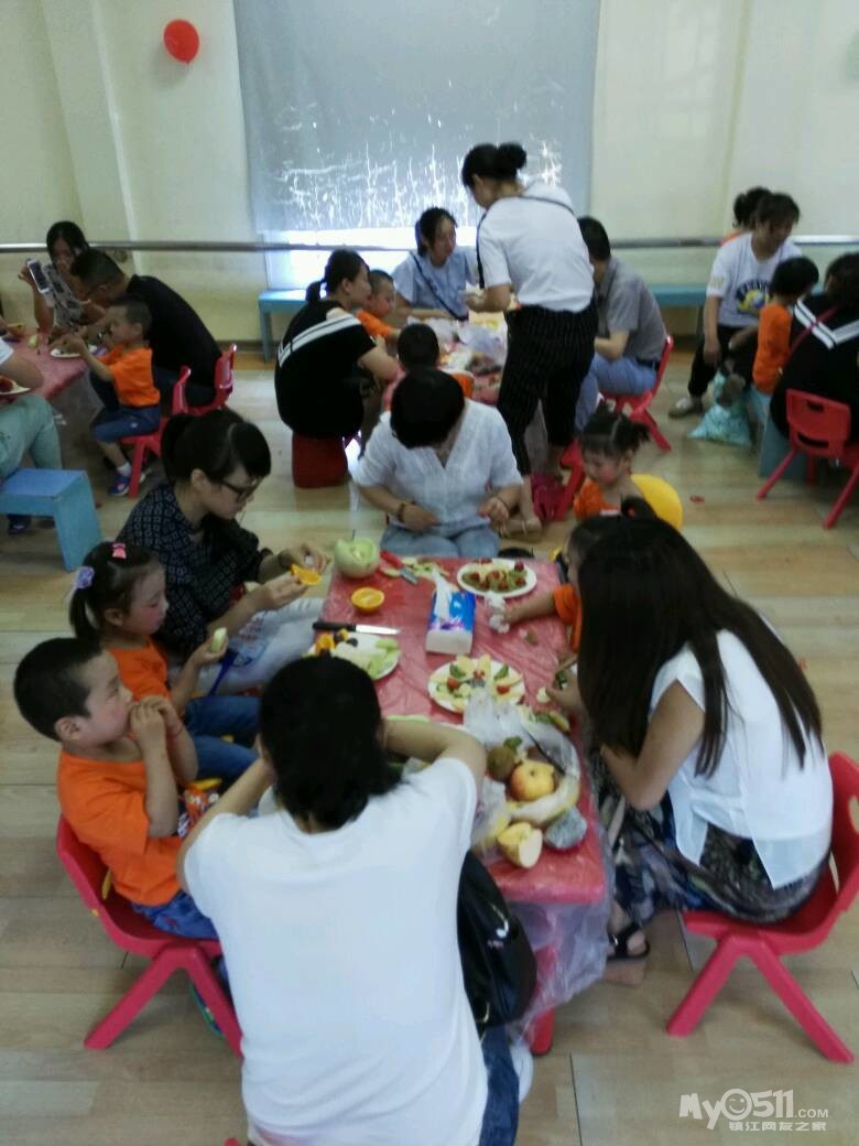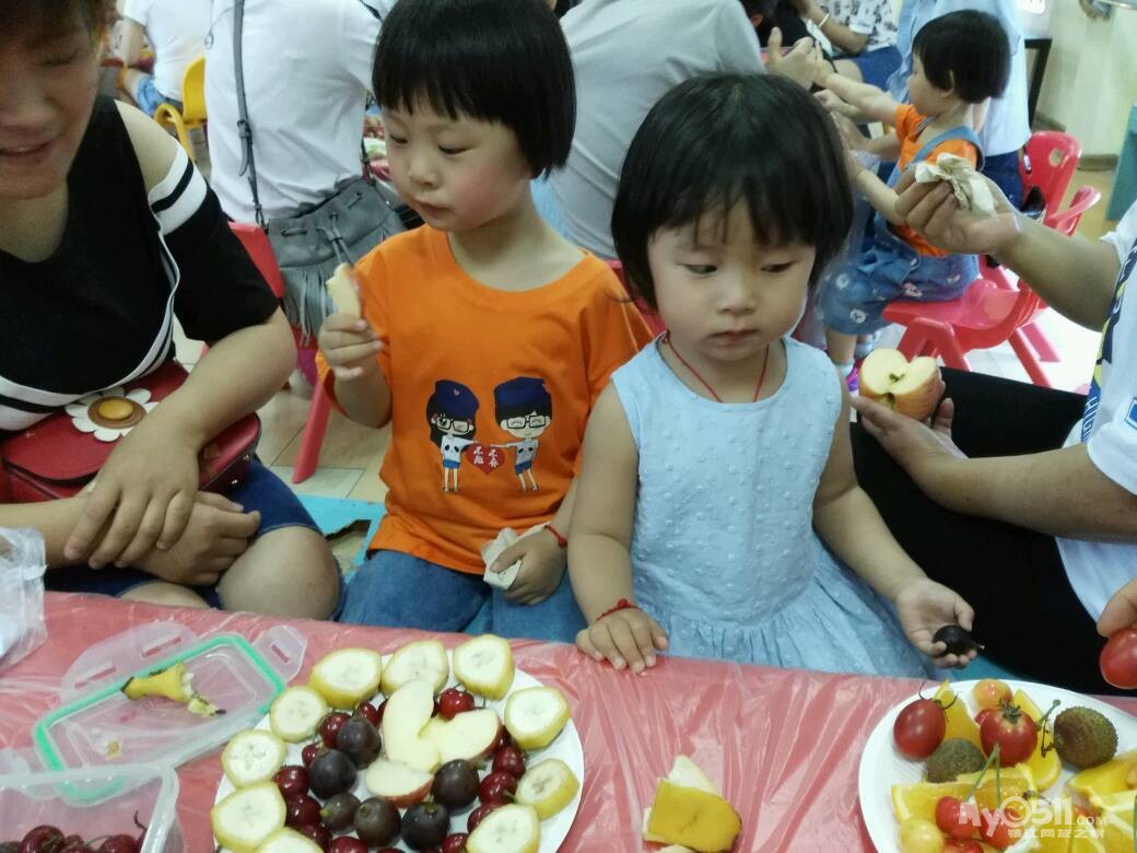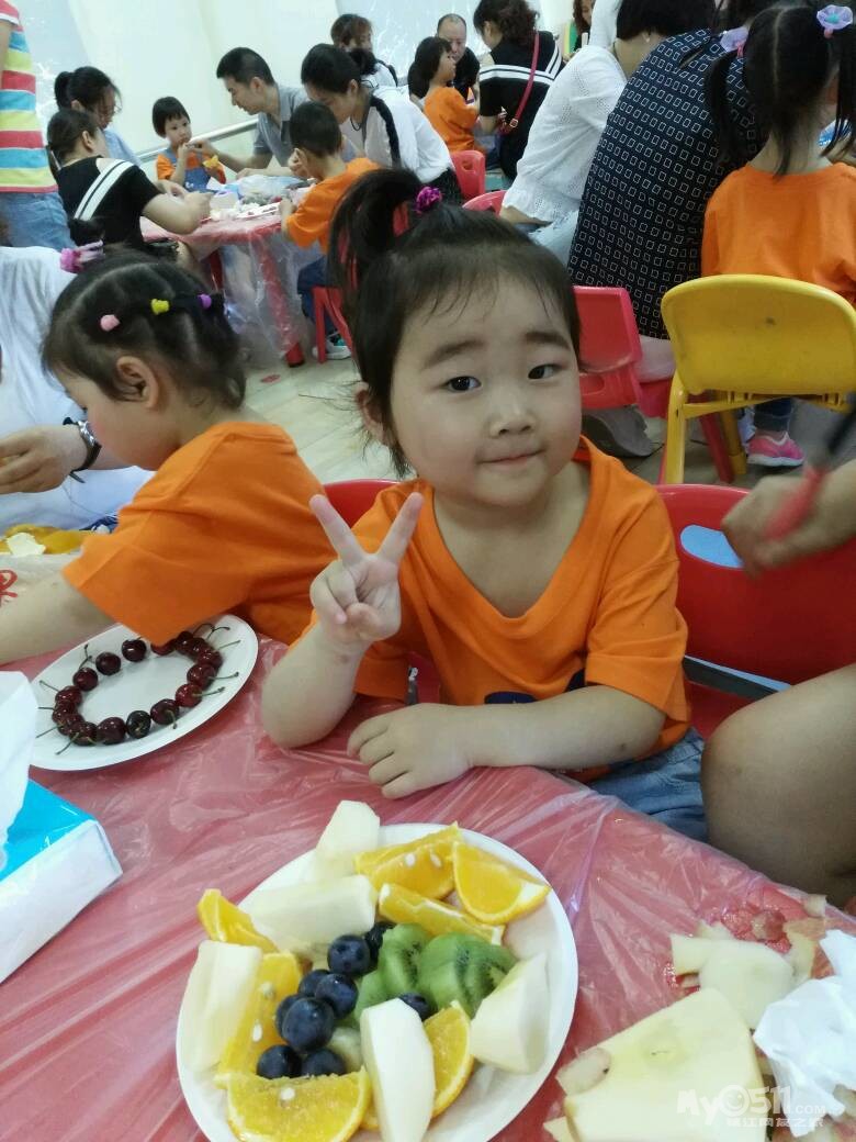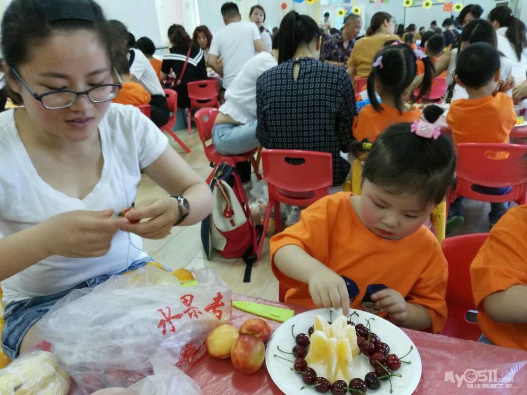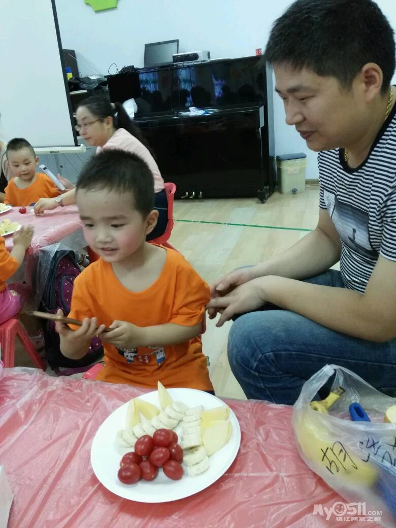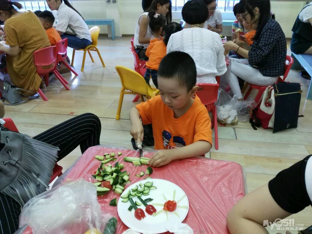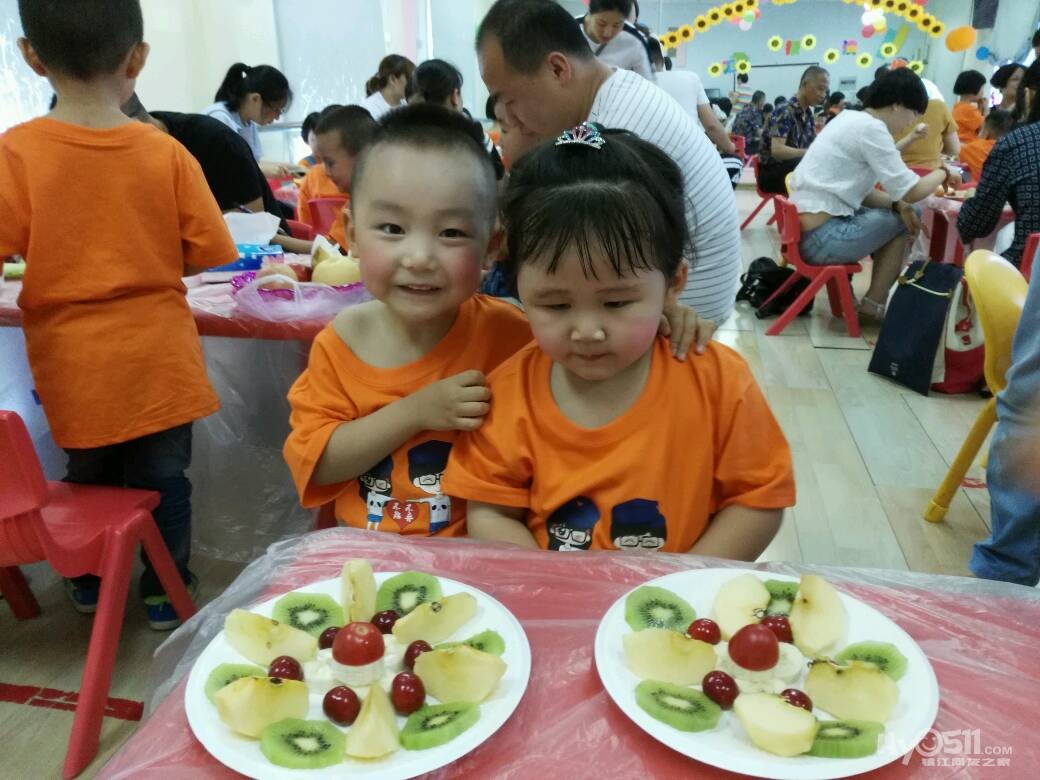 家长们和孩子共同制作水果拼盘
