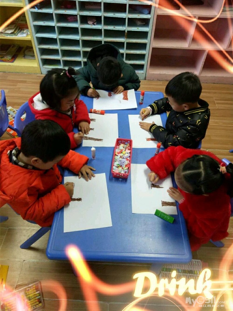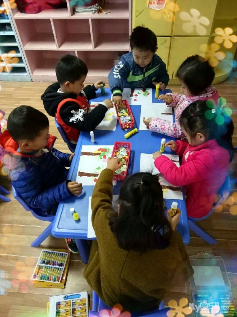 创意美术:碎纸粘贴树