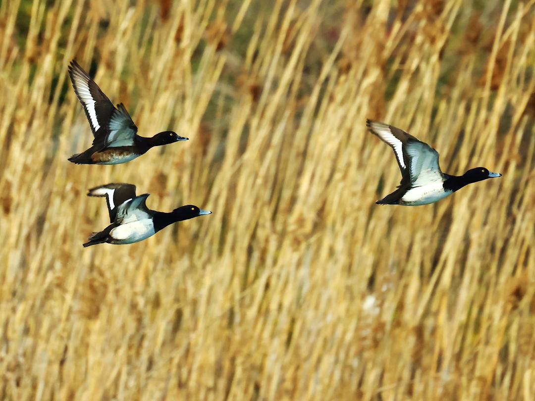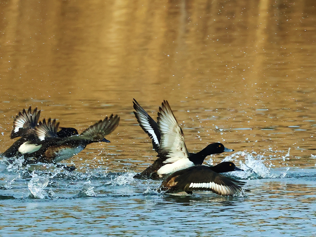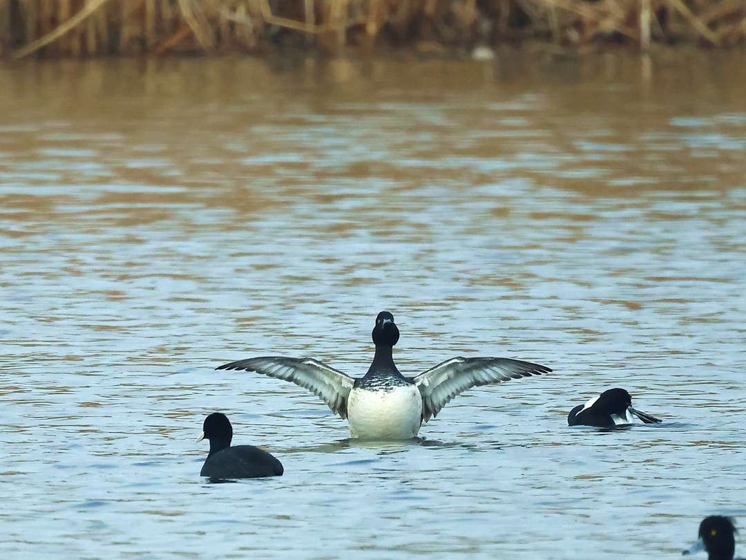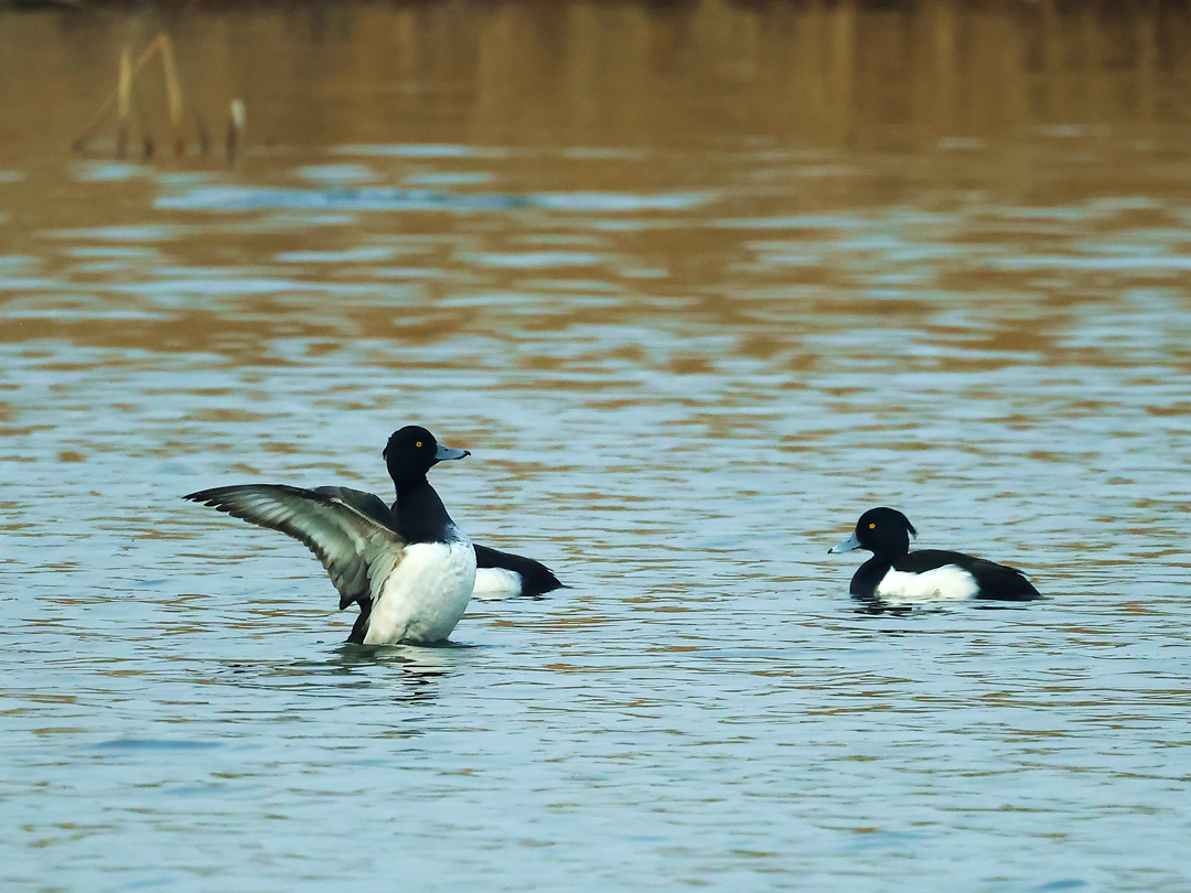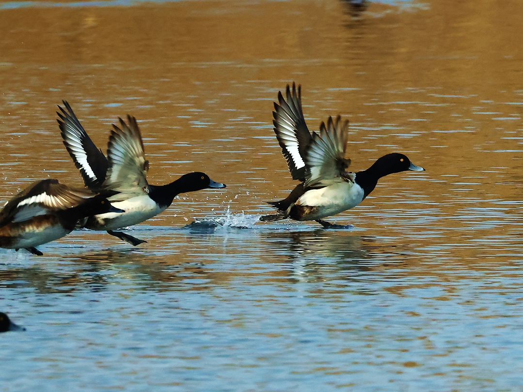 > 成群的野鸭来金山湖越冬