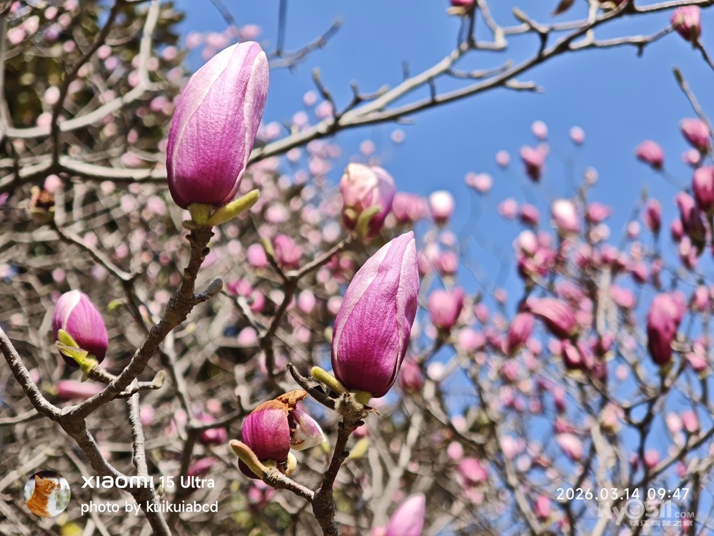 白色的广玉兰开了一部分,紫色的那个全是花苞,最佳观赏时间应该是下周。