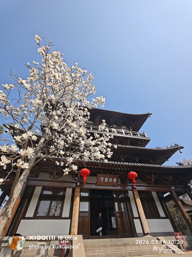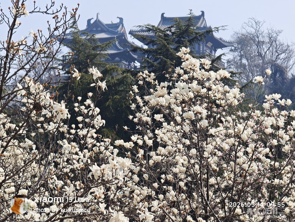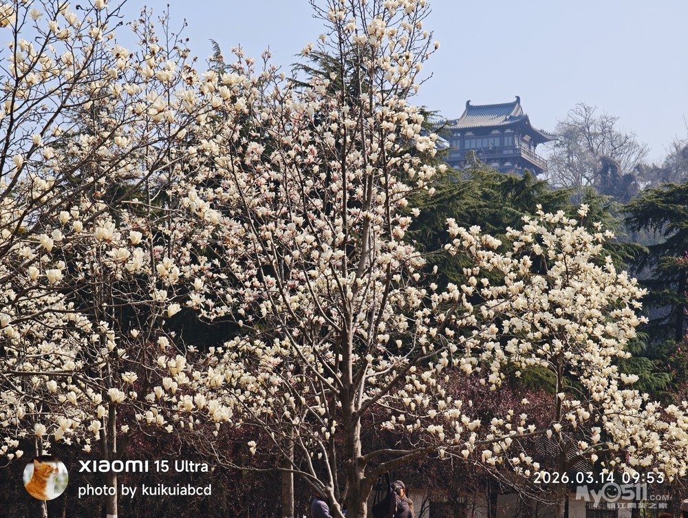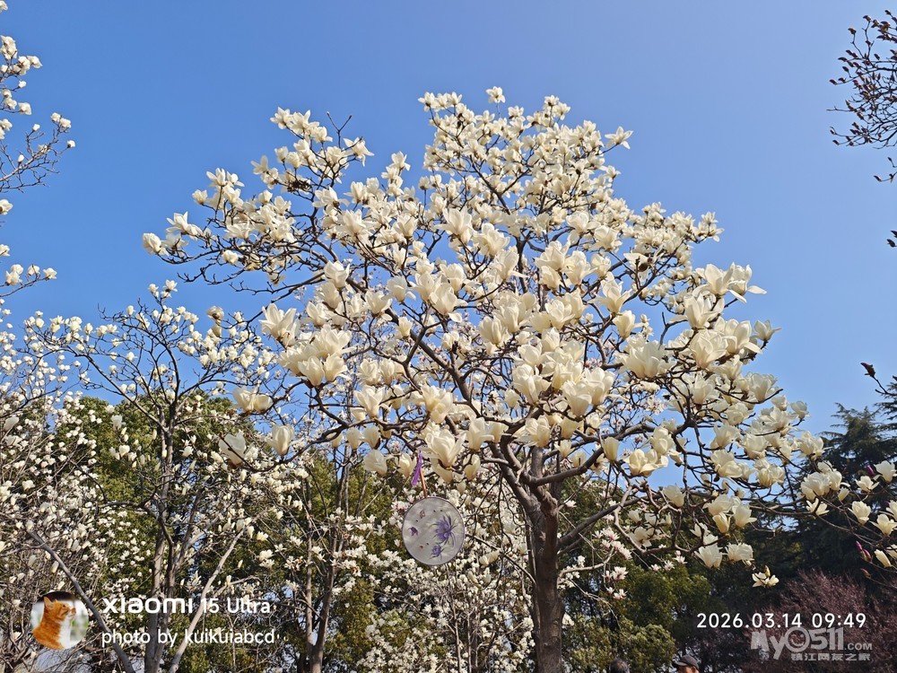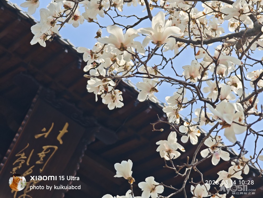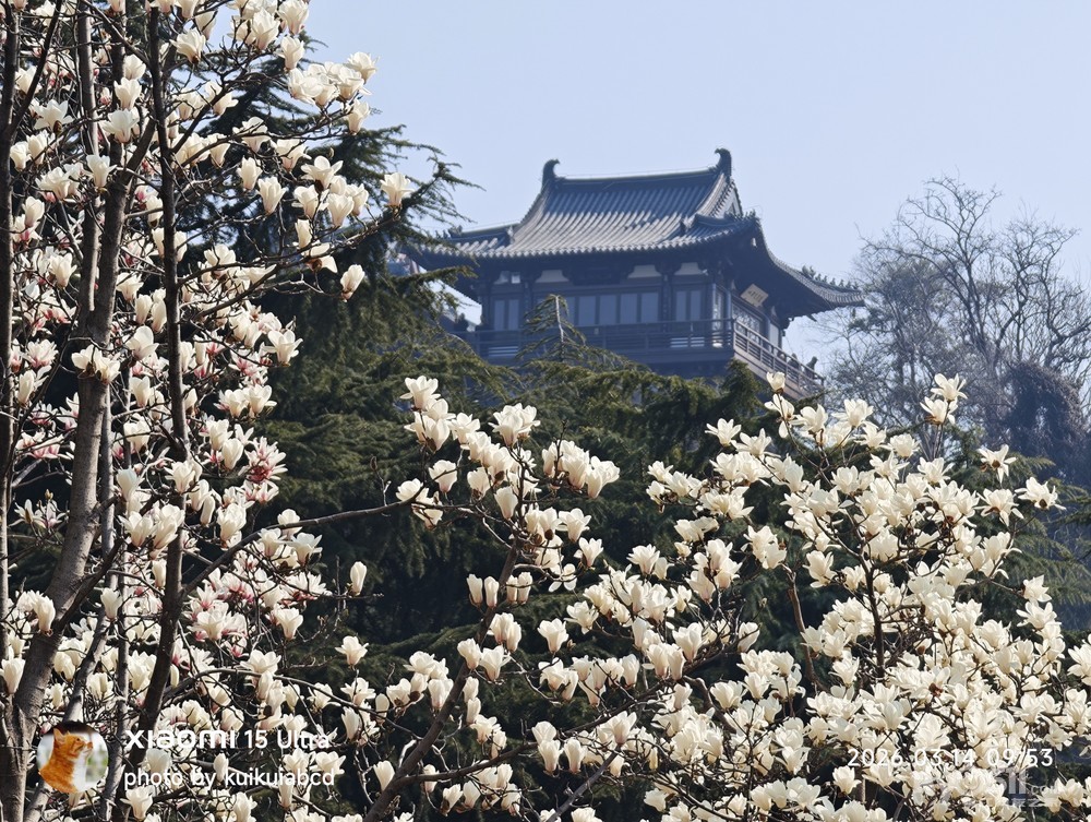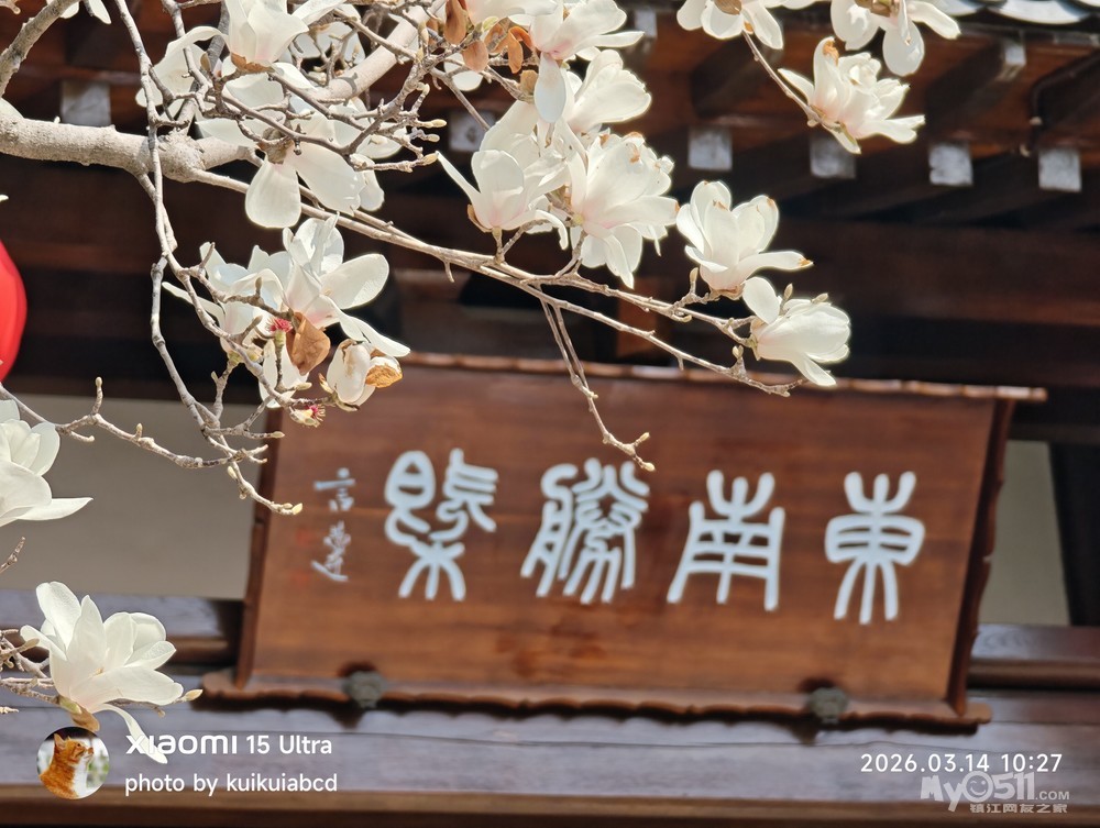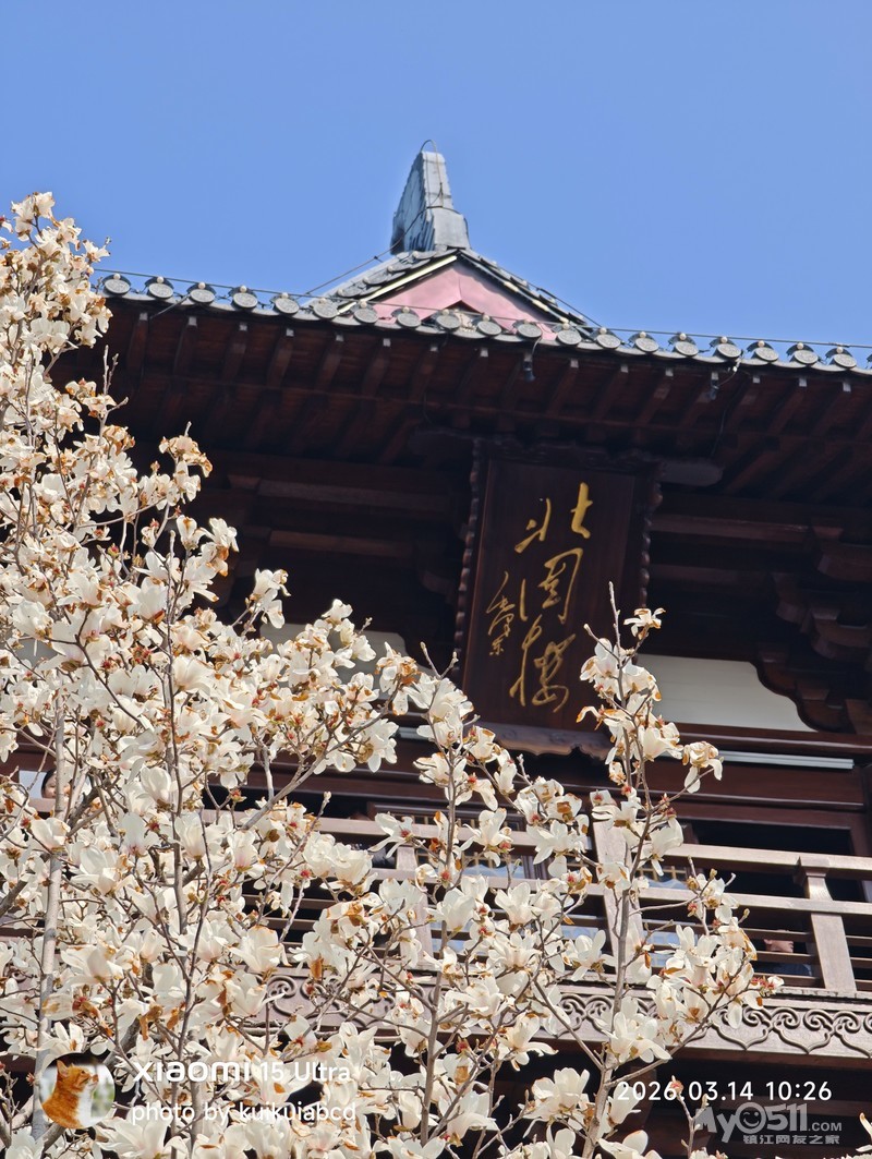 北固山北固楼下的玉兰花也开了