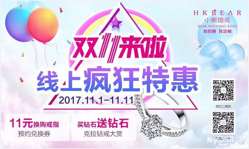 » 梦溪论坛 » 谈婚论嫁 » 双11小熊不来福利怎么行?买戒指只需11元,裸钻+对戒订单再减1111元,买钻石再送钻石