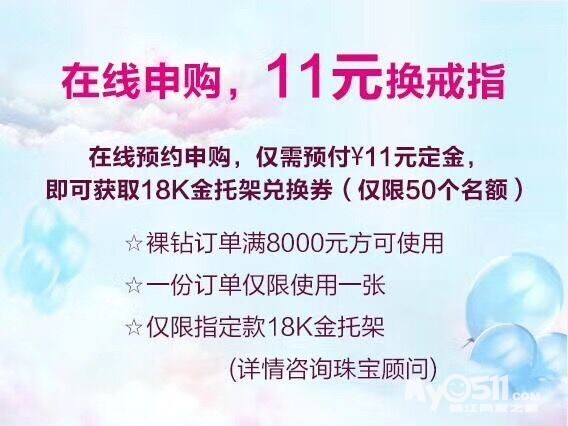 活动二:在線申请,仅需预付11元定金,即可獲取18K金托架兌換券仅限50個名額)於11.11日當天訂單使用