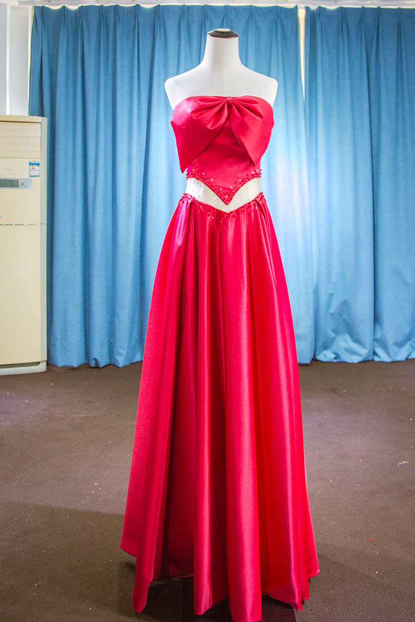 NO.7抹胸款甜美风格的蝴蝶结礼服显得俏皮可爱,腰间半透的设计将完美的腰身尽显,又透露出一丝丝的小性感,下半身的裙摆很有质感,整件礼服将新人的身材完美展现。