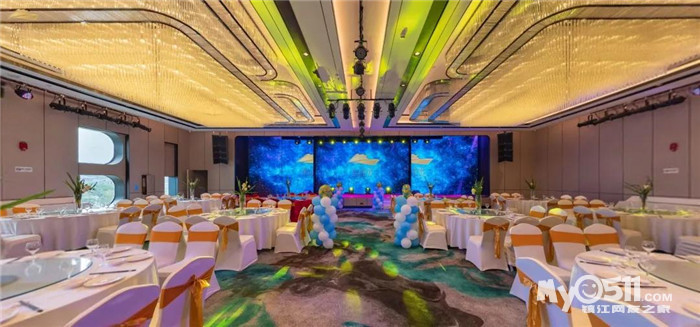 5大宴会厅举高8米,可同时容纳2000余位宾客就餐,宴会厅配有高科技的3D全息影像设备以及媲美央视的舞美灯光和线阵列音响,大气磅礴,让您尽享奢华梦幻婚礼。